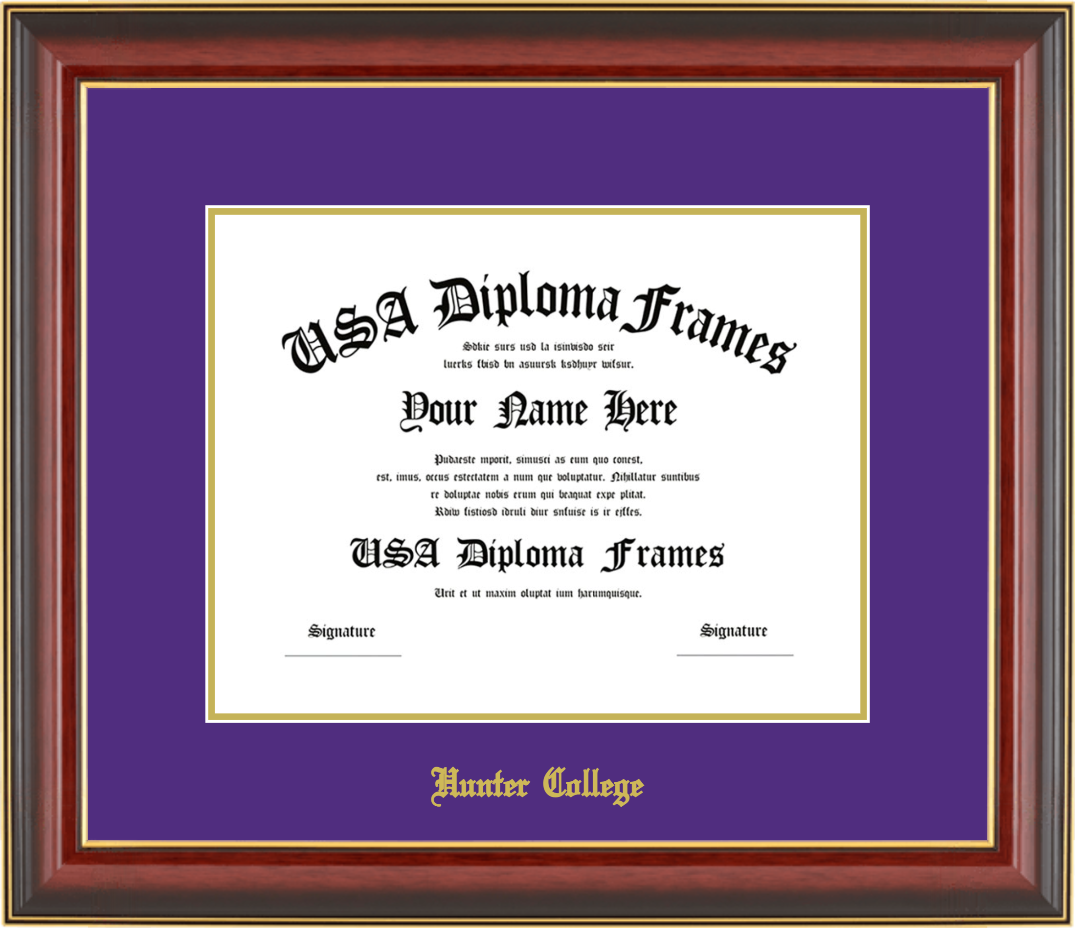 Hunter College of the City University of New York – Single Horizontal Document ( Diploma ) – Cherry Mahogany Gold Trim Glossy – Purple Mat – Gold Accent Mat – With Gold Embossing (Hunter College)
