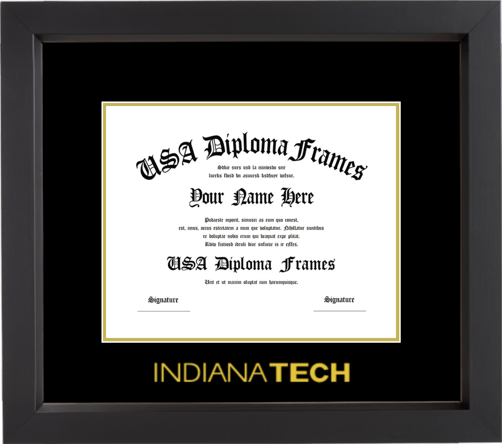 Indiana Tech Diploma Frame – Black Matte – Black and Gold Mat