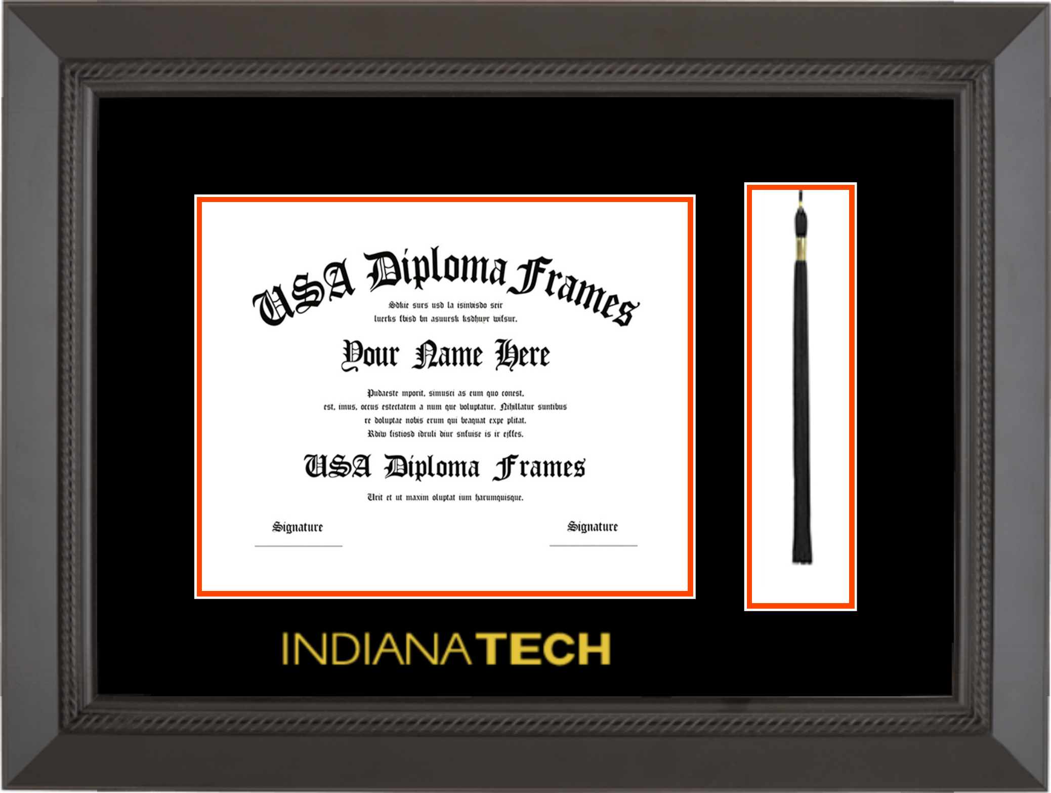 Indiana Tech – Single Horizontal Document ( Bachelors ) – Black Rope – Black Mat – Orange Accent Mat – With Tassel(Default) – With Image Embossing(Gold)