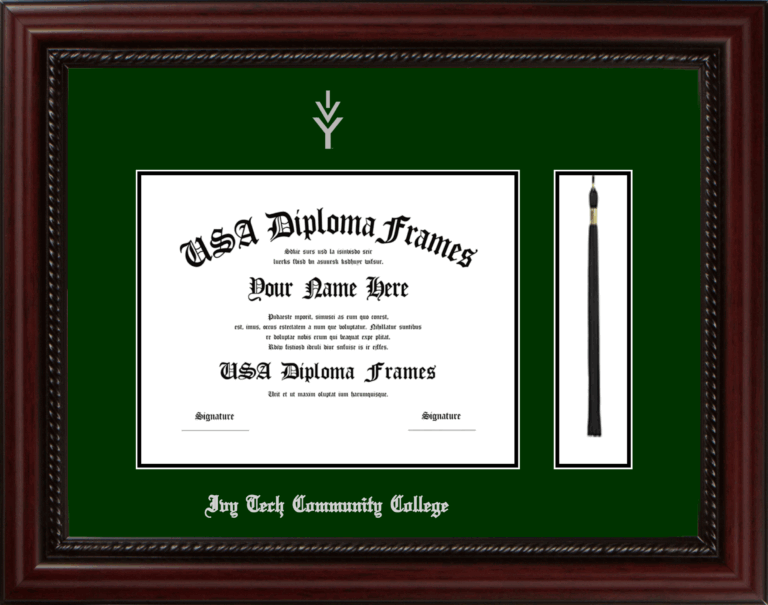 Ivy Tech Community College Diploma Frame with Tassel – Executive Cherry Rope – Winter Green and Black Mat