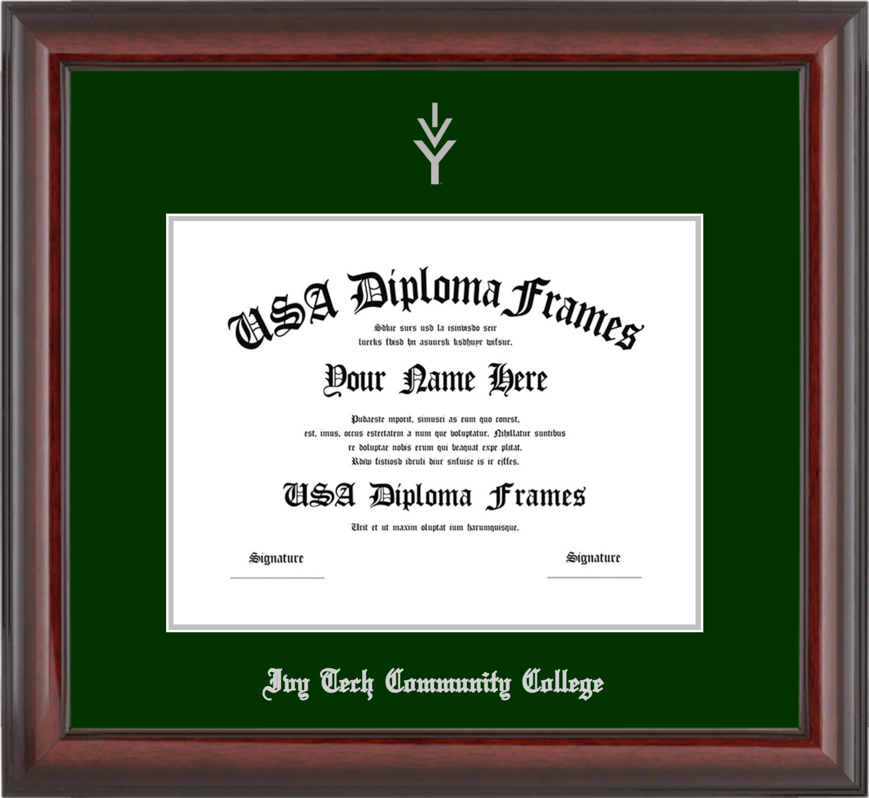 Ivy Tech Community College – Single Horizontal Document ( Diploma ) – Cherry Mahogany Glossy – Winter Green Mat – Silver Accent Mat – With Seal(University Seal Silver) – With Silver Embossing (Ivy Tech Community College)