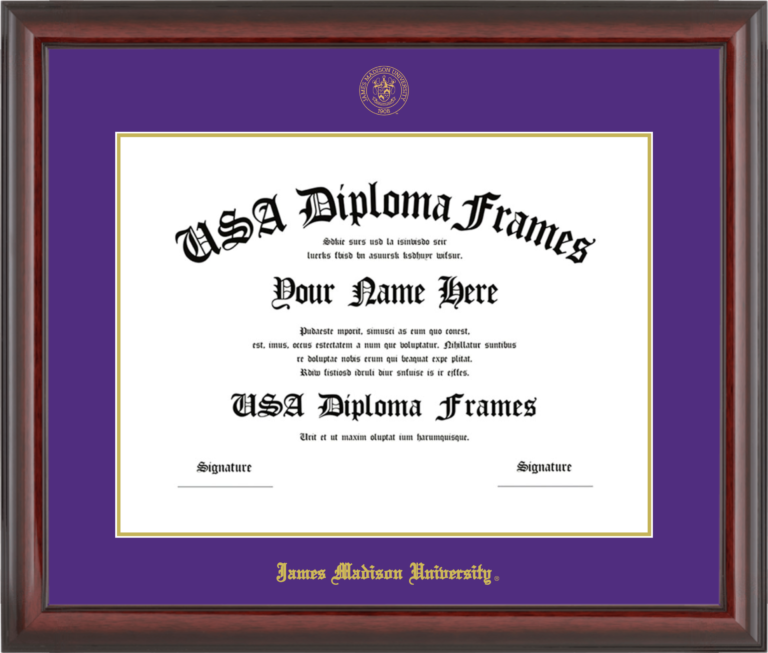 Want to explore more styles? Browse our full range of diploma frame layouts, or visit the James Madison University to view options available for your school. Looking for a fully personalized design? Try our custom Frame Builder and create a frame that’s uniquely yours.