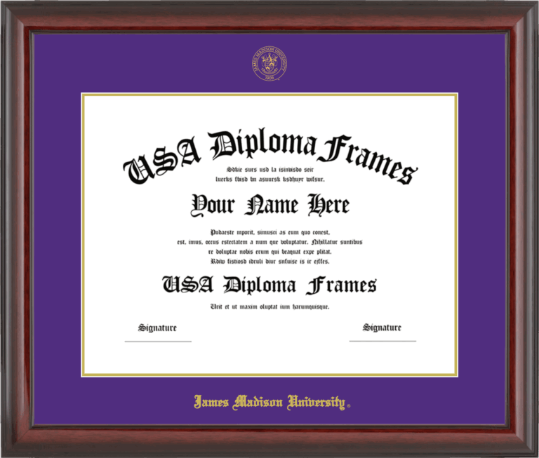 Want to explore more styles? Browse our full range of diploma frame layouts, or visit the James Madison University to view options available for your school. Looking for a fully personalized design? Try our custom Frame Builder and create a frame that’s uniquely yours.