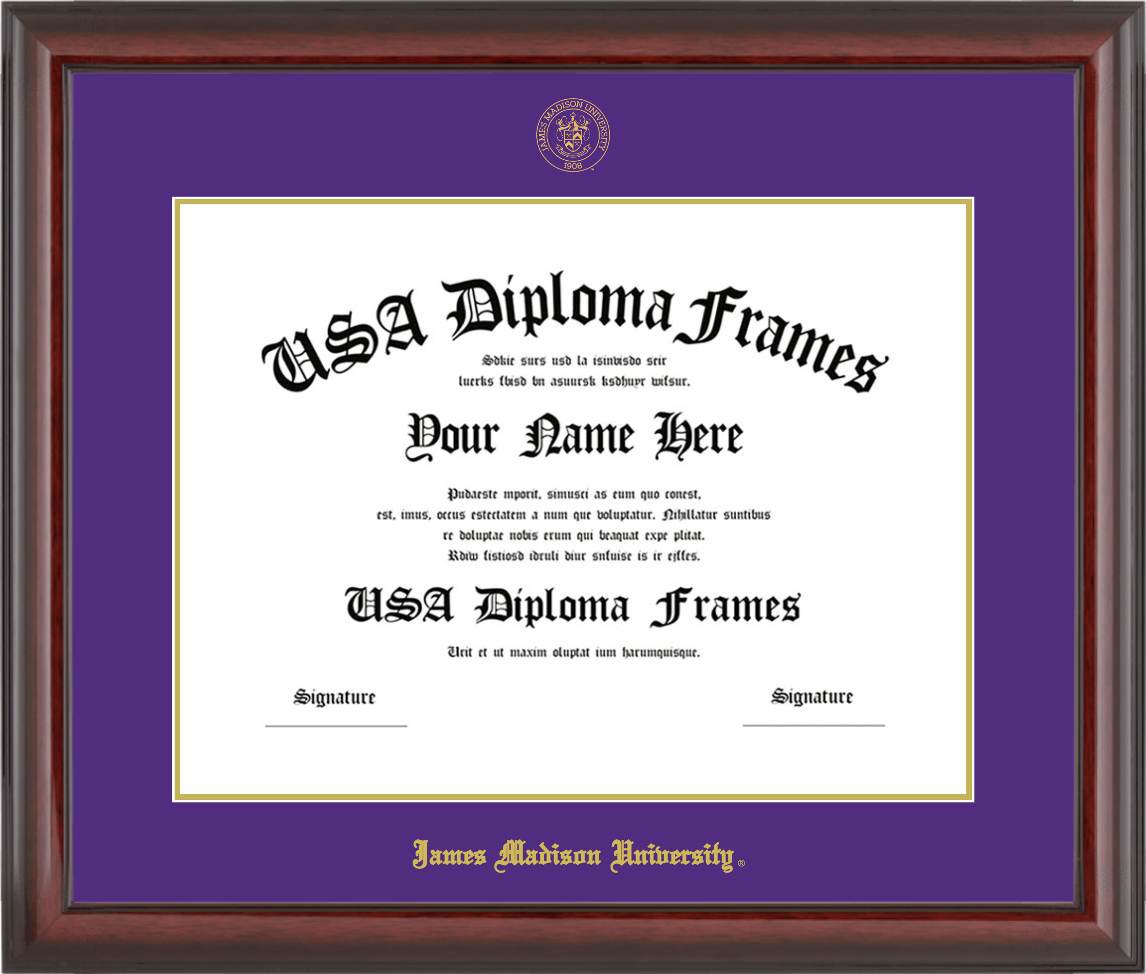 James Madison University Diploma Frame – Cherry Mahogany Glossy – Purple and Gold Mat