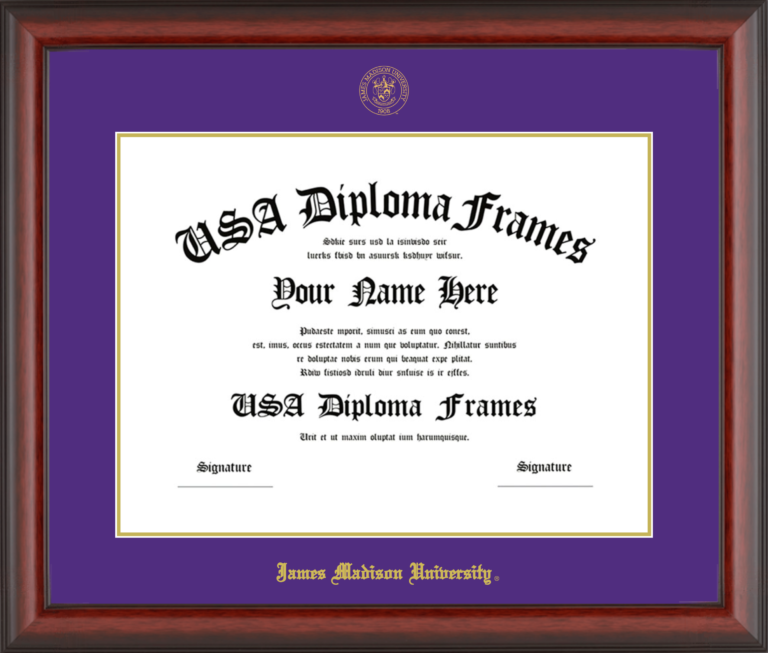 Want to explore more styles? Browse our full range of diploma frame layouts, or visit the James Madison University to view options available for your school. Looking for a fully personalized design? Try our custom Frame Builder and create a frame that’s uniquely yours.