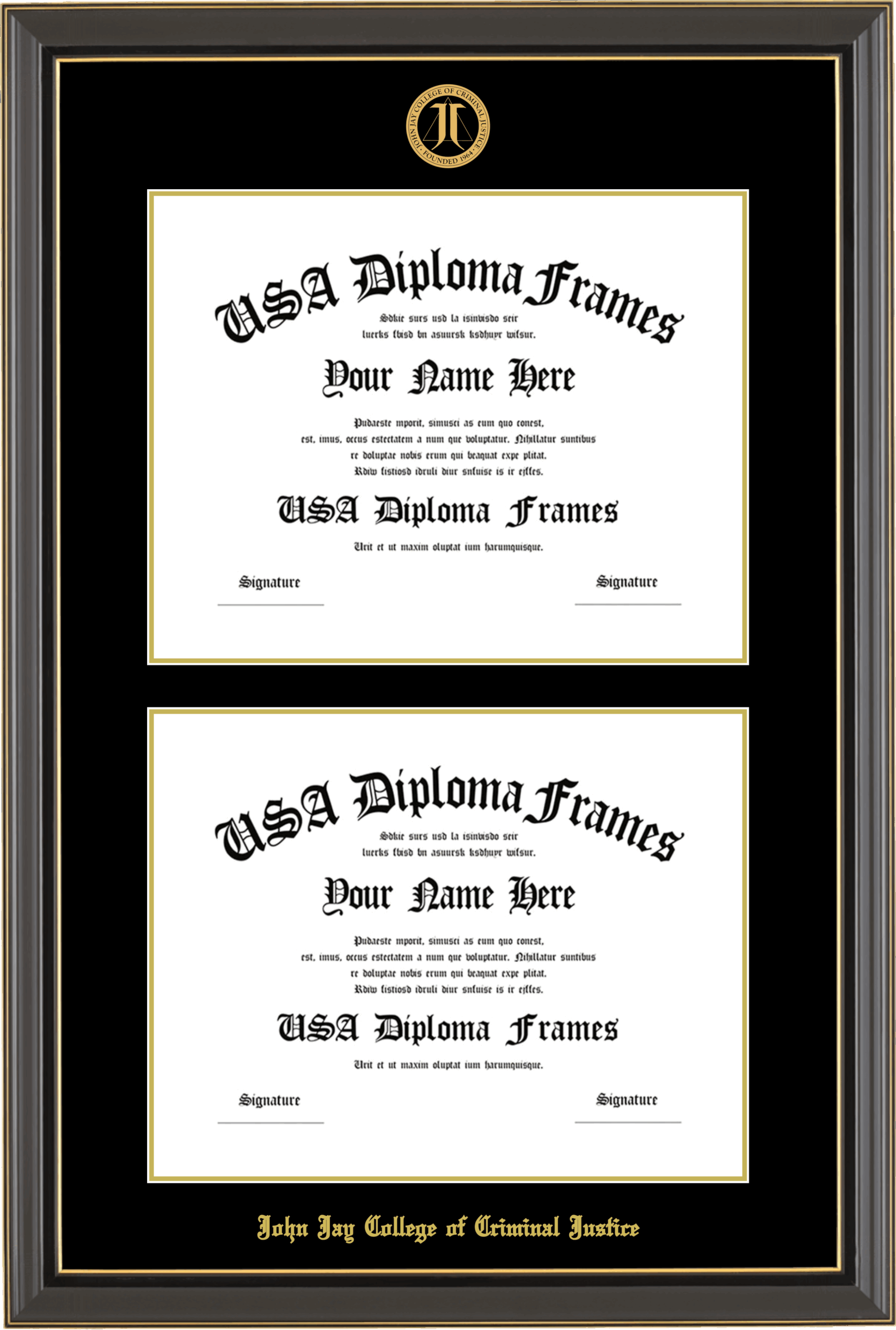 John Jay College of Criminal Justice Double Diploma Frame – Double Document – Black Gold Trim Glossy – Black and Gold Mat