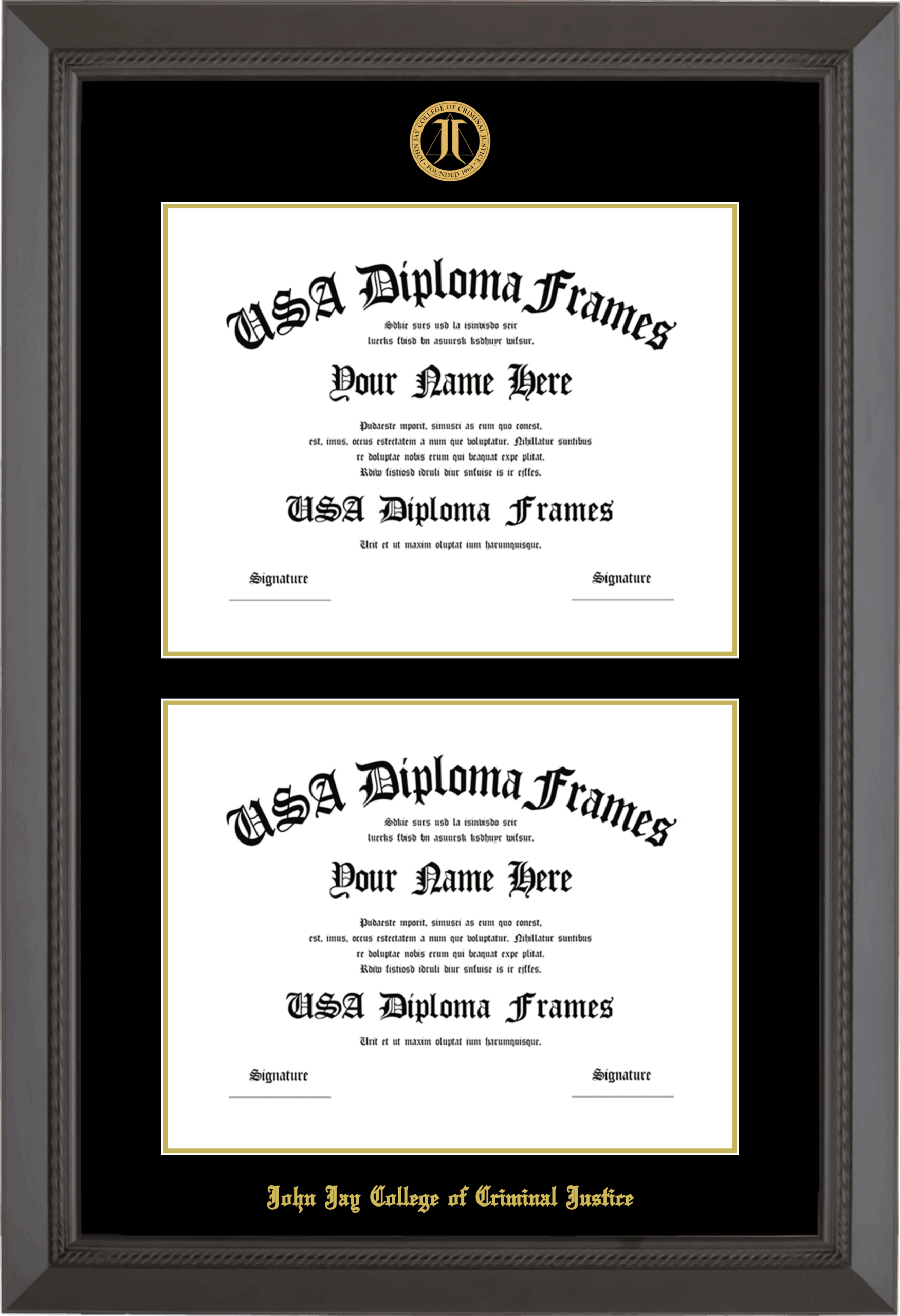 John Jay College of Criminal Justice Double Diploma Frame – Double Document – Black Rope – Black and Gold Mat