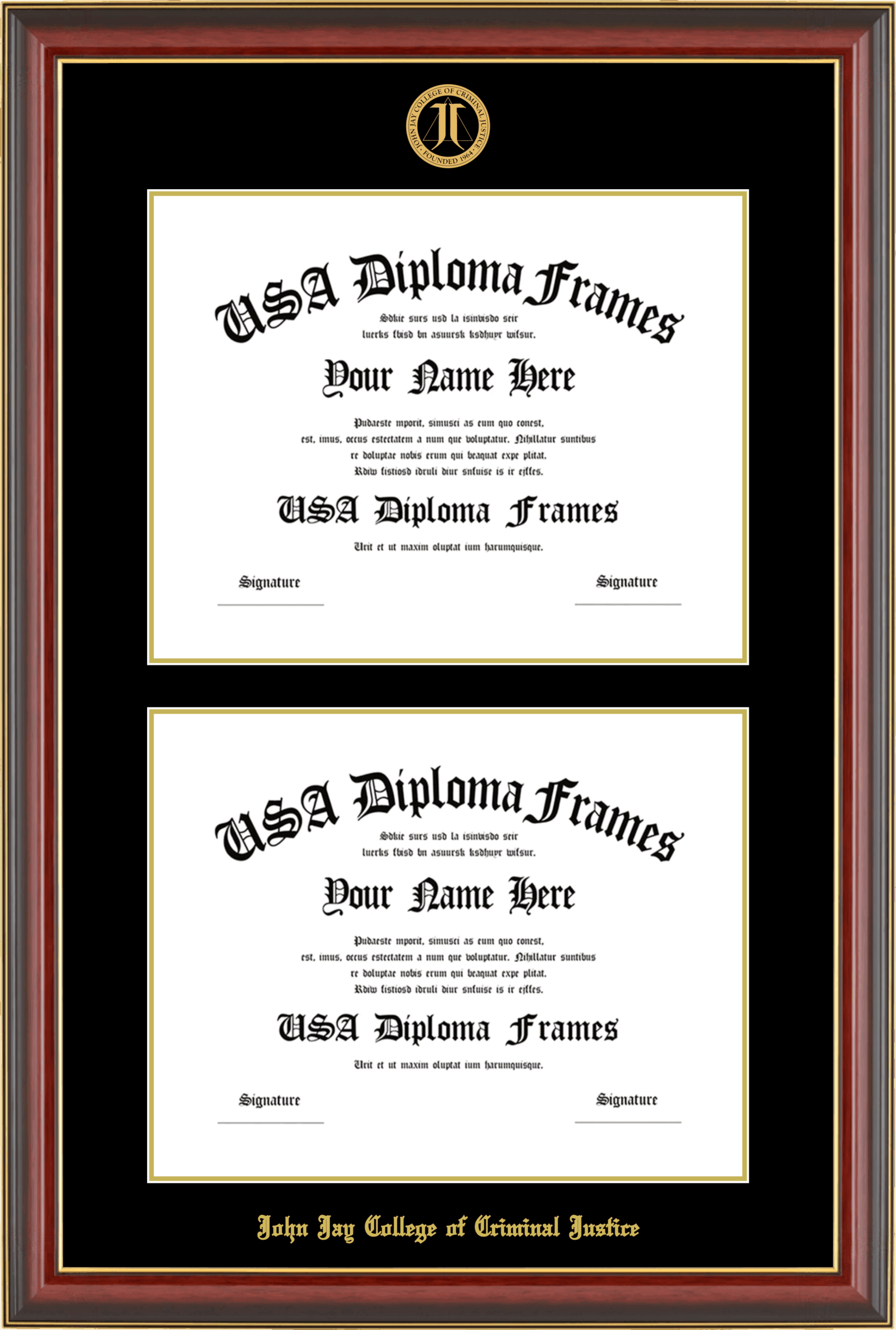 John Jay College of Criminal Justice Double Diploma Frame – Double Document – Cherry Mahogany Gold Trim Glossy – Black and Gold Mat