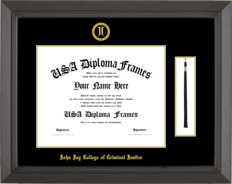 Want to explore more styles? Browse our full range of diploma frame layouts, or visit the John Jay College of Criminal Justice of the City University of New York to view options available for your school. Looking for a fully personalized design? Try our custom Frame Builder and create a frame that’s uniquely yours.