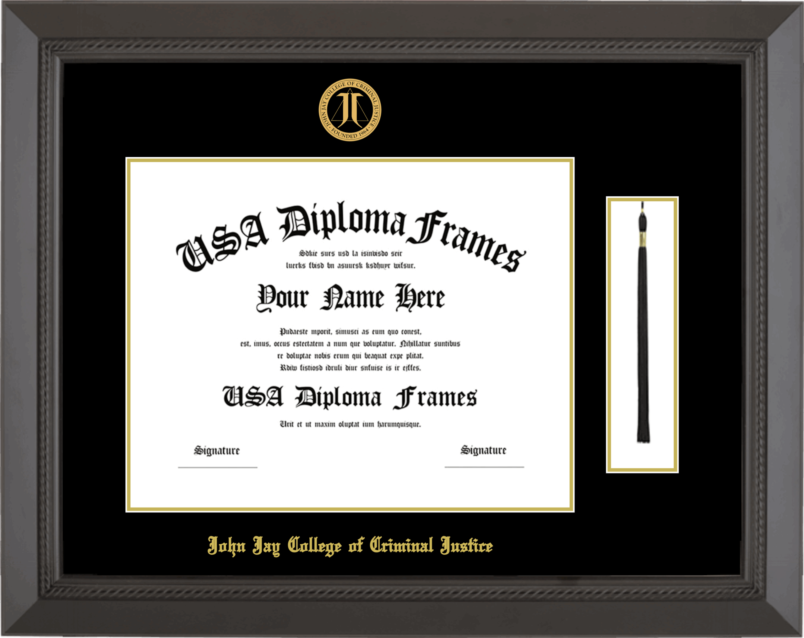 John Jay College of Criminal Justice of the City University of New York – Single Horizontal Document ( Bachelors ) – Black Rope – Black Mat – Gold Accent Mat – With Tassel(Default) – With Seal(University Seal Gold) – With Gold Embossing (John Jay College of Criminal Justice)