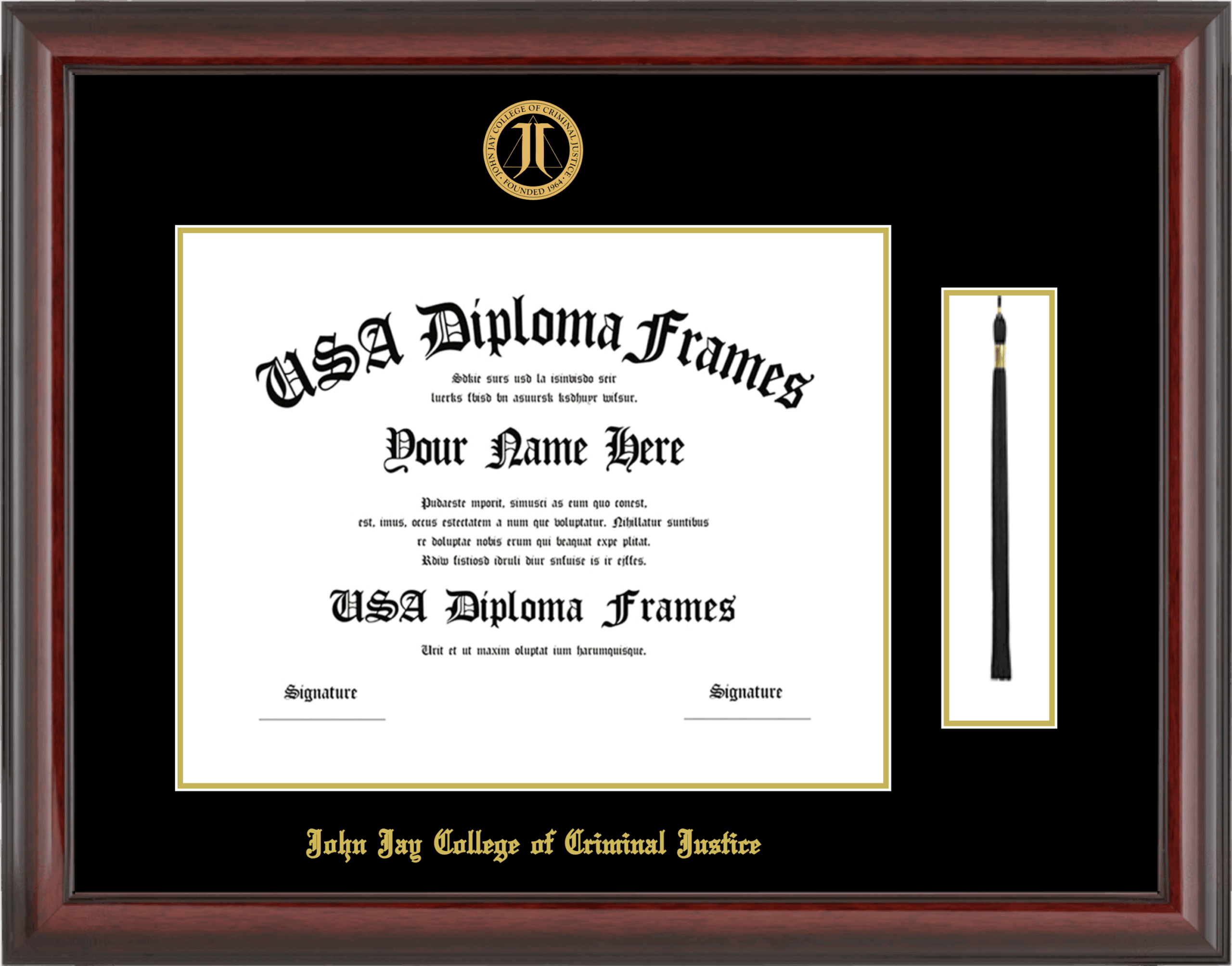 John Jay College of Criminal Justice of the City University of New York – Single Horizontal Document ( Bachelors ) – Cherry Mahogany Glossy – Black Mat – Gold Accent Mat – With Tassel(Default) – With Seal(University Seal Gold) – With Gold Embossing (John Jay College of Criminal Justice)