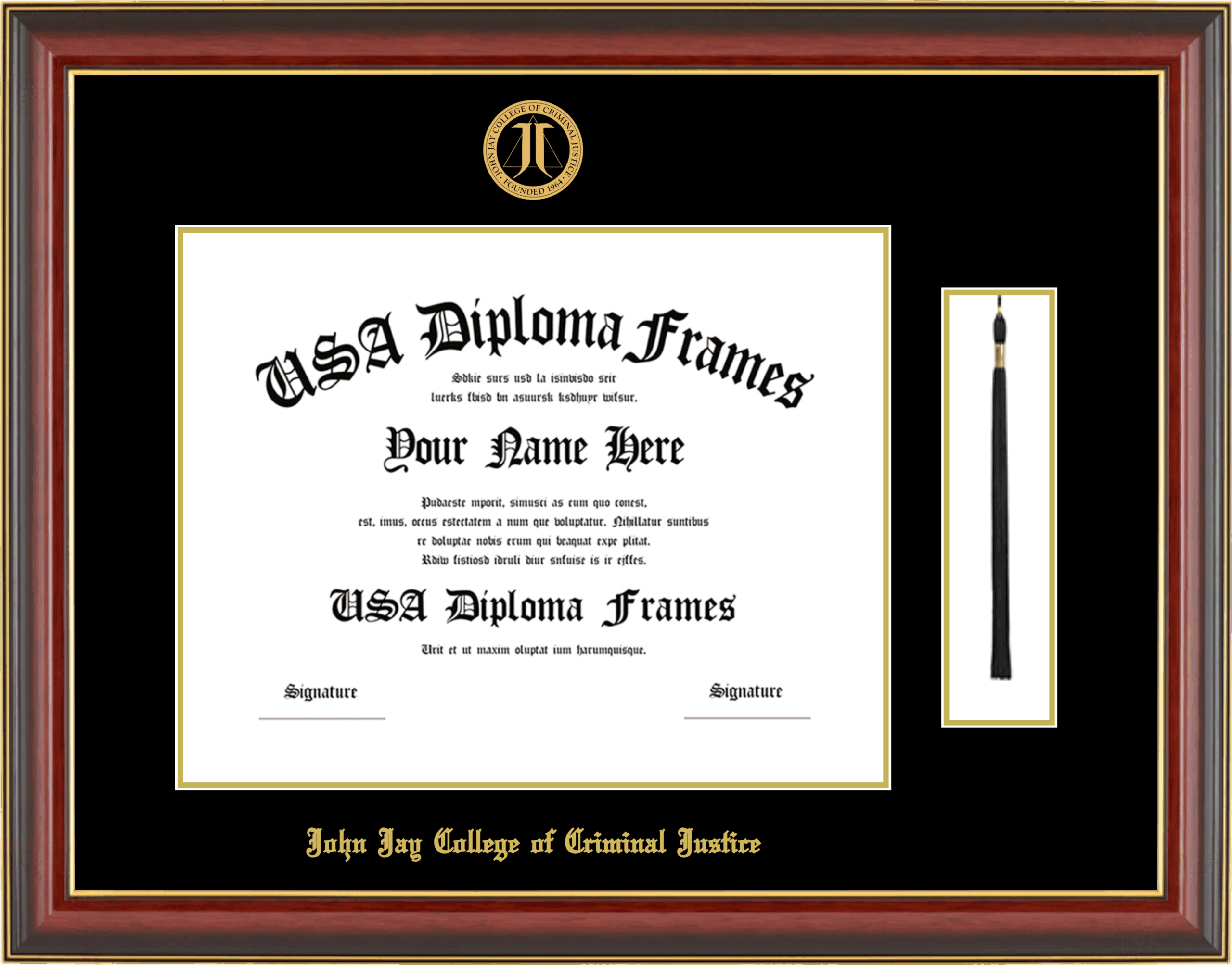 John Jay College of Criminal Justice of the City University of New York – Single Horizontal Document ( Bachelors ) – Cherry Mahogany Gold Trim Glossy – Black Mat – Gold Accent Mat – With Tassel(Default) – With Seal(University Seal Gold) – With Gold Embossing (John Jay College of Criminal Justice)