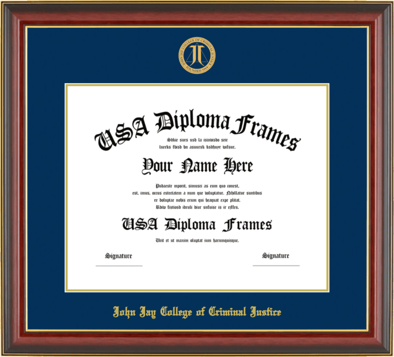 Want to explore more styles? Browse our full range of diploma frame layouts, or visit the John Jay College of Criminal Justice of the City University of New York to view options available for your school. Looking for a fully personalized design? Try our custom Frame Builder and create a frame that’s uniquely yours.