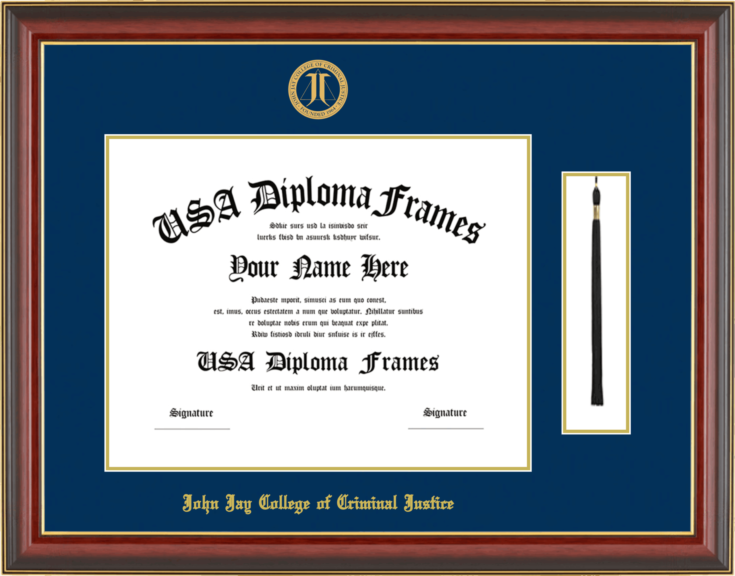 John Jay College of Criminal Justice of the City University of New York – Single Horizontal Document ( Bachelors ) – Cherry Mahogany Gold Trim Glossy – Navy Mat – Gold Accent Mat – With Tassel(Default) – With Seal(University Seal Gold) – With Gold Embossing (John Jay College of Criminal Justice)