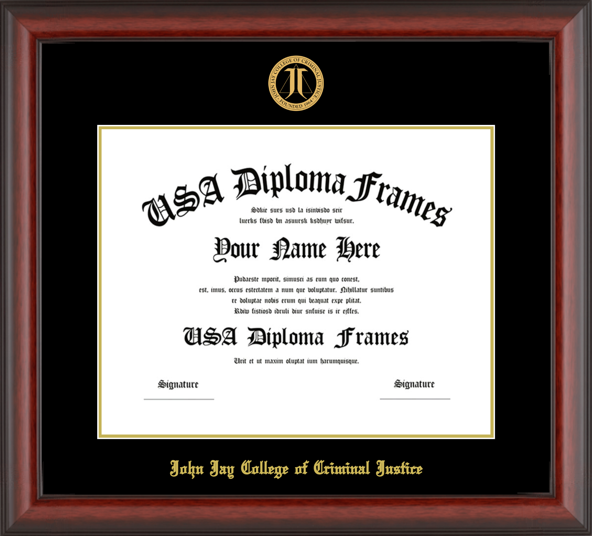 John Jay College of Criminal Justice Diploma Frame – Cherry Mahogany Matte – Black and Gold Mat