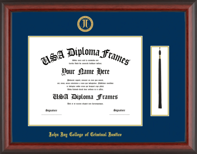 Want to explore more styles? Browse our full range of diploma frame layouts, or visit the John Jay College of Criminal Justice of the City University of New York to view options available for your school. Looking for a fully personalized design? Try our custom Frame Builder and create a frame that’s uniquely yours.