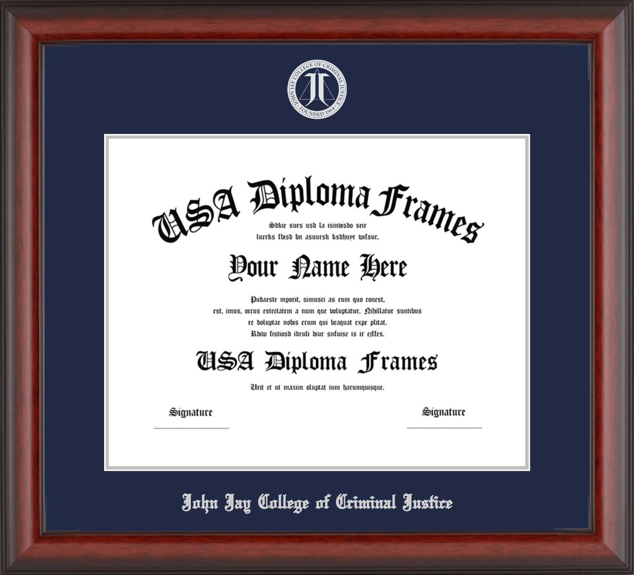 John Jay College of Criminal Justice of the City University of New York – Single Horizontal Document ( Bachelors ) – Cherry Mahogany Matte – Navy Mat – Silver Accent Mat – With Seal(University Seal Silver) – With Silver Embossing (John Jay College of Criminal Justice)