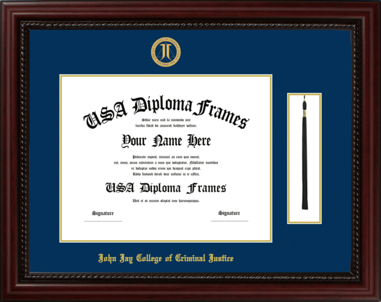 Want to explore more styles? Browse our full range of diploma frame layouts, or visit the John Jay College of Criminal Justice of the City University of New York to view options available for your school. Looking for a fully personalized design? Try our custom Frame Builder and create a frame that’s uniquely yours.