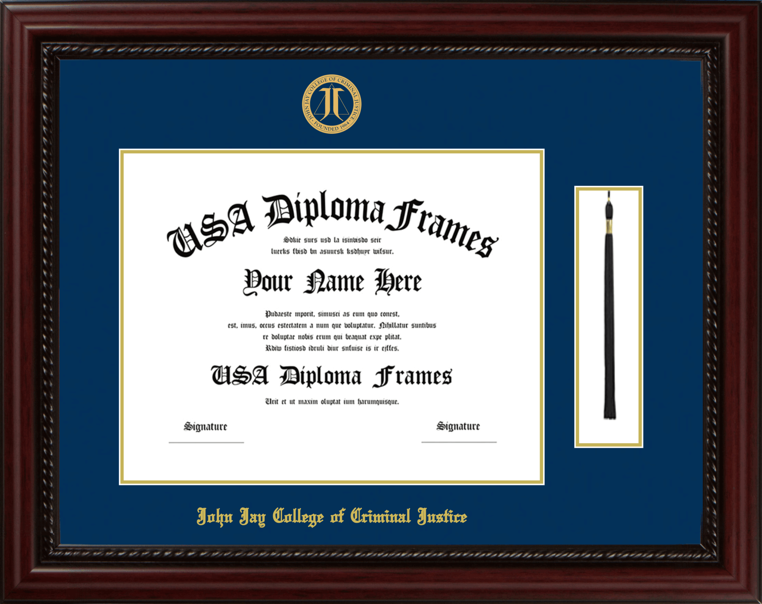 John Jay College of Criminal Justice of the City University of New York – Single Horizontal Document ( Bachelors ) – Executive Cherry Rope – Navy Mat – Gold Accent Mat – With Tassel(Default) – With Seal(University Seal Gold) – With Gold Embossing (John Jay College of Criminal Justice)