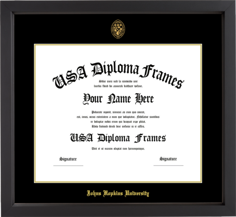Johns Hopkins University Diploma Frame – Black Matte – Black and Gold Mat