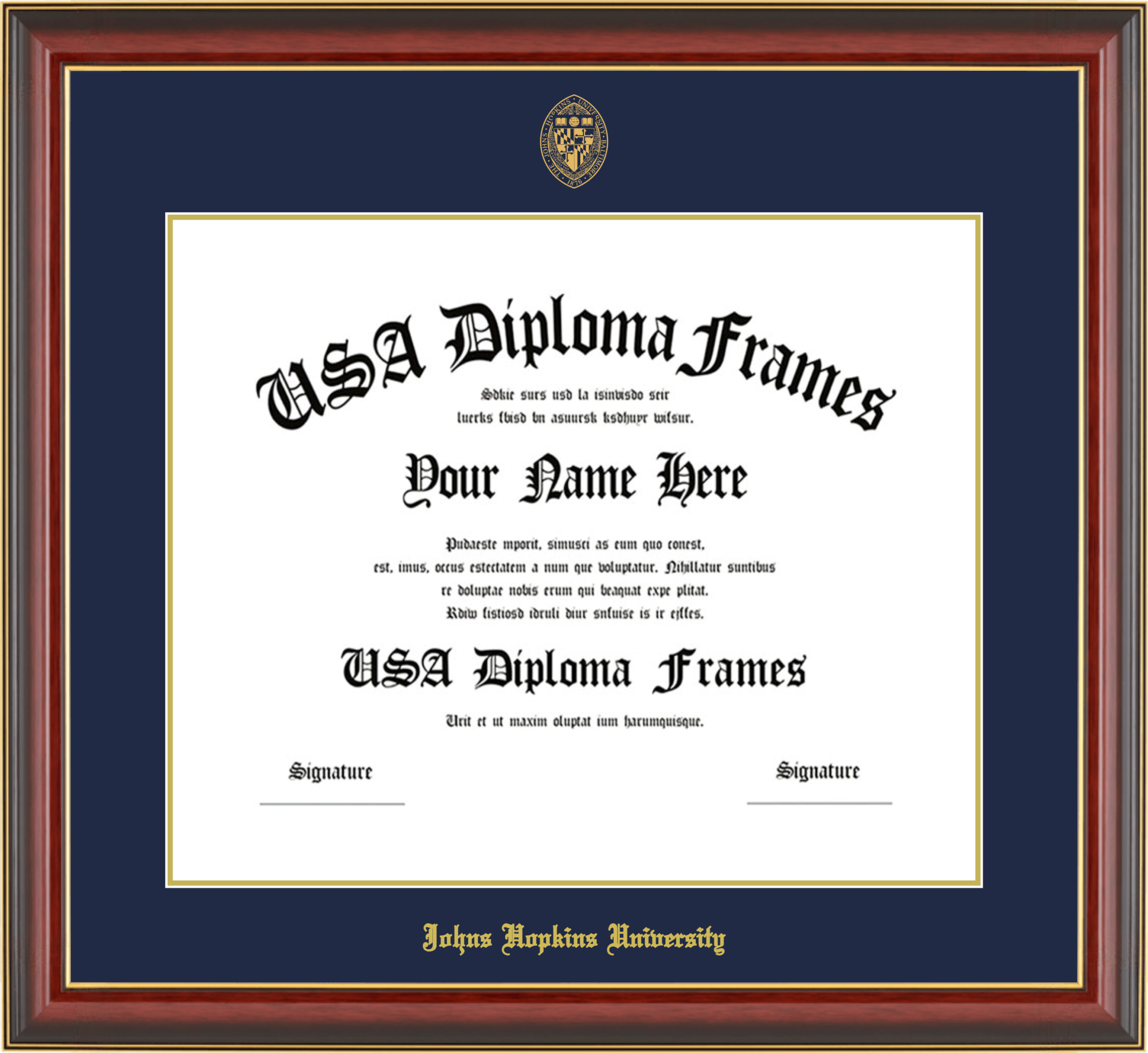 Johns Hopkins University – Single Horizontal Document ( Diploma ) – Cherry Mahogany Gold Trim Glossy – Navy Mat – Gold Accent Mat – With Seal(University Seal Gold) – With Gold Embossing (Johns Hopkins University)