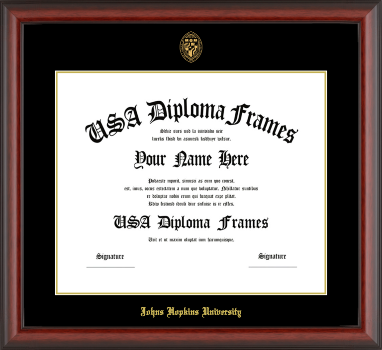 Johns Hopkins University Diploma Frame – Cherry Mahogany Matte – Black and Gold Mat