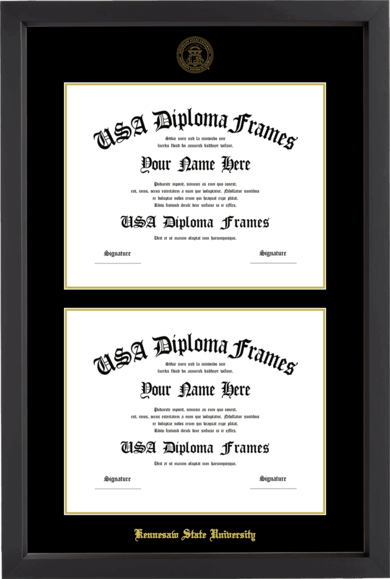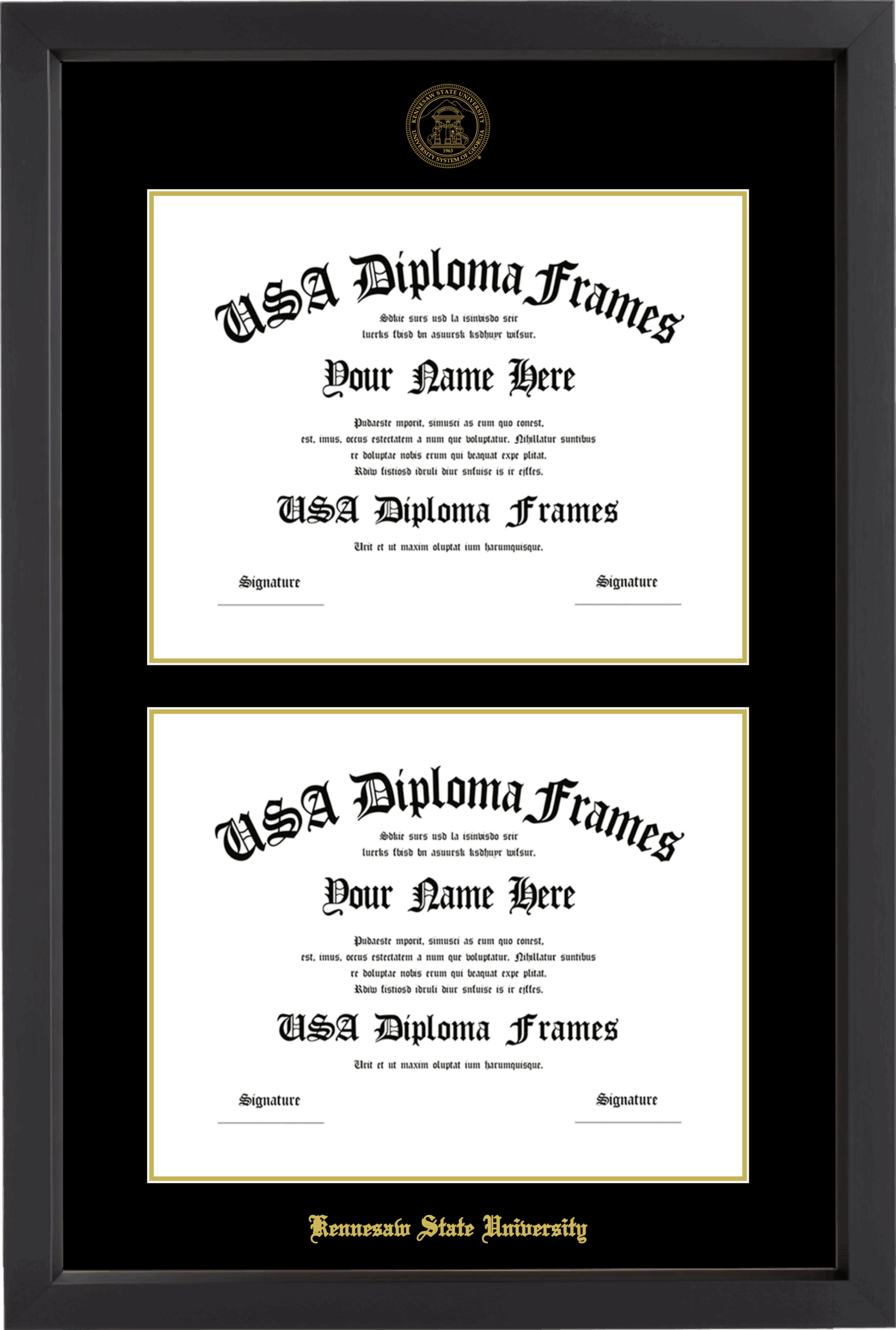 Kennesaw State University Double Diploma Frame – Double Document – Black Matte – Black and Gold Mat