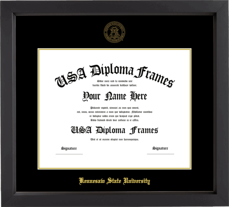 Want to explore more styles? Browse our full range of diploma frame layouts, or visit the Kennesaw State University to view options available for your school. Looking for a fully personalized design? Try our custom Frame Builder and create a frame that’s uniquely yours.