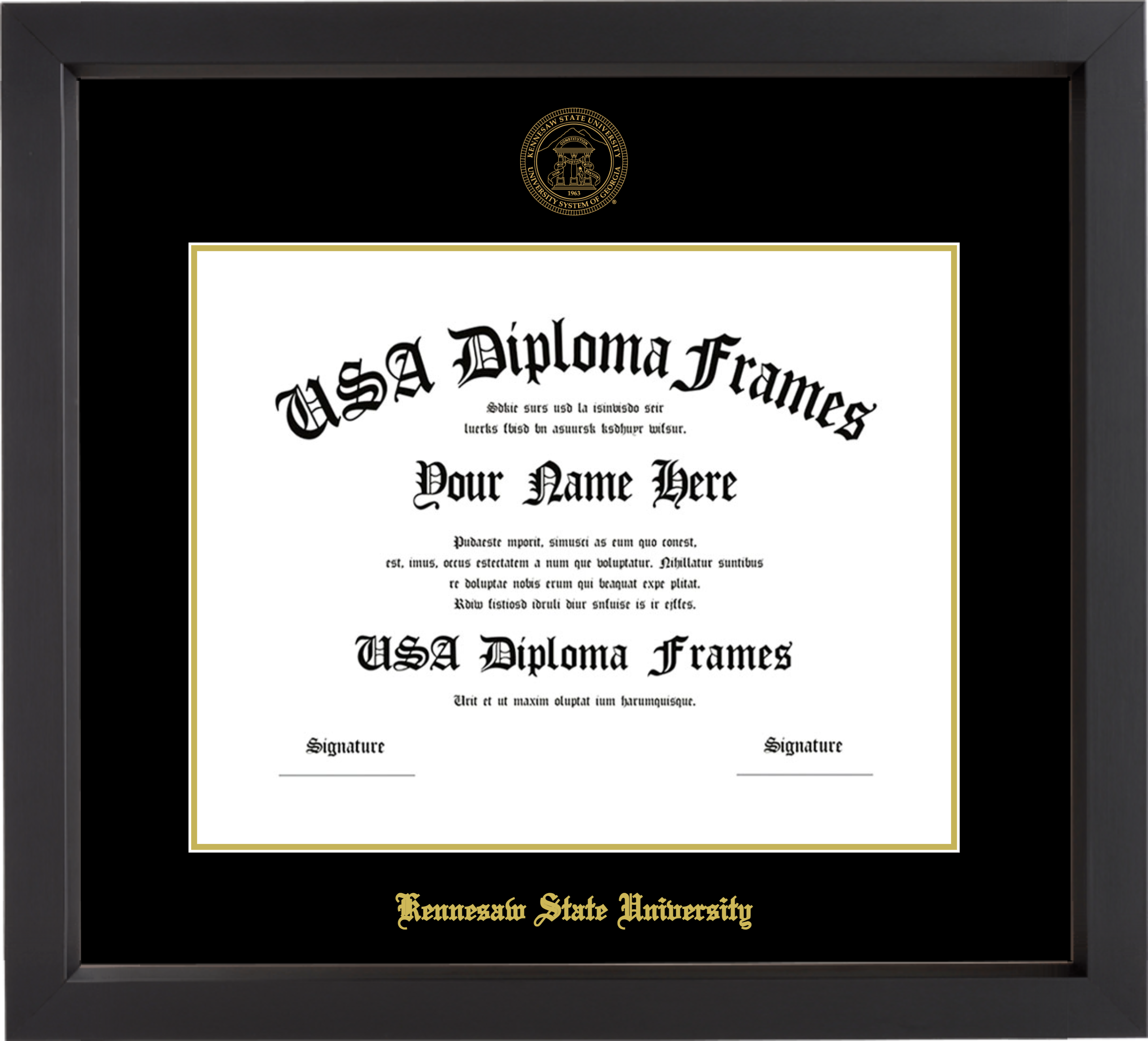 Kennesaw State University – Single Horizontal Document ( Bachelors ) – Black Matte – Black Mat – Gold Accent Mat – With Seal(University Seal Gold) – With Gold Embossing (Kennesaw State University)