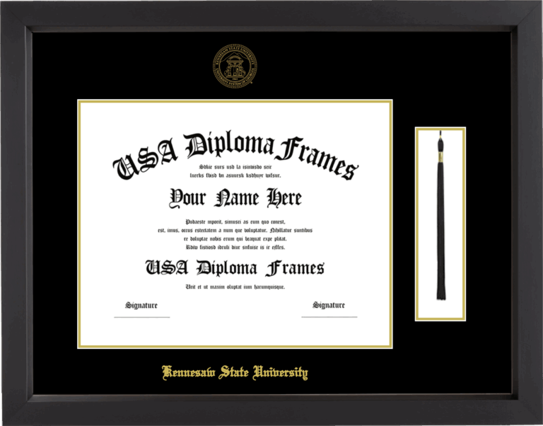 Want to explore more styles? Browse our full range of diploma frame layouts, or visit the Kennesaw State University to view options available for your school. Looking for a fully personalized design? Try our custom Frame Builder and create a frame that’s uniquely yours.