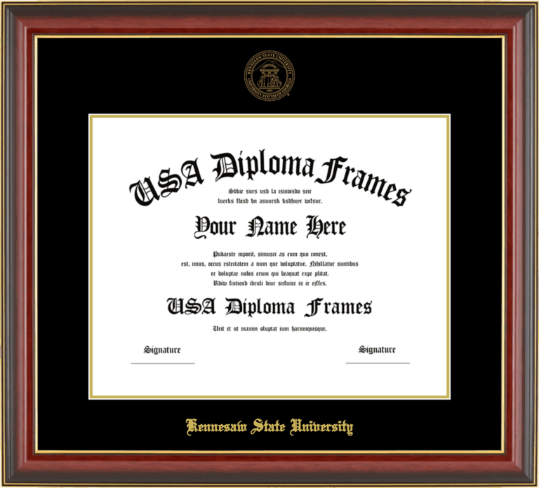 Want to explore more styles? Browse our full range of diploma frame layouts, or visit the Kennesaw State University to view options available for your school. Looking for a fully personalized design? Try our custom Frame Builder and create a frame that’s uniquely yours.