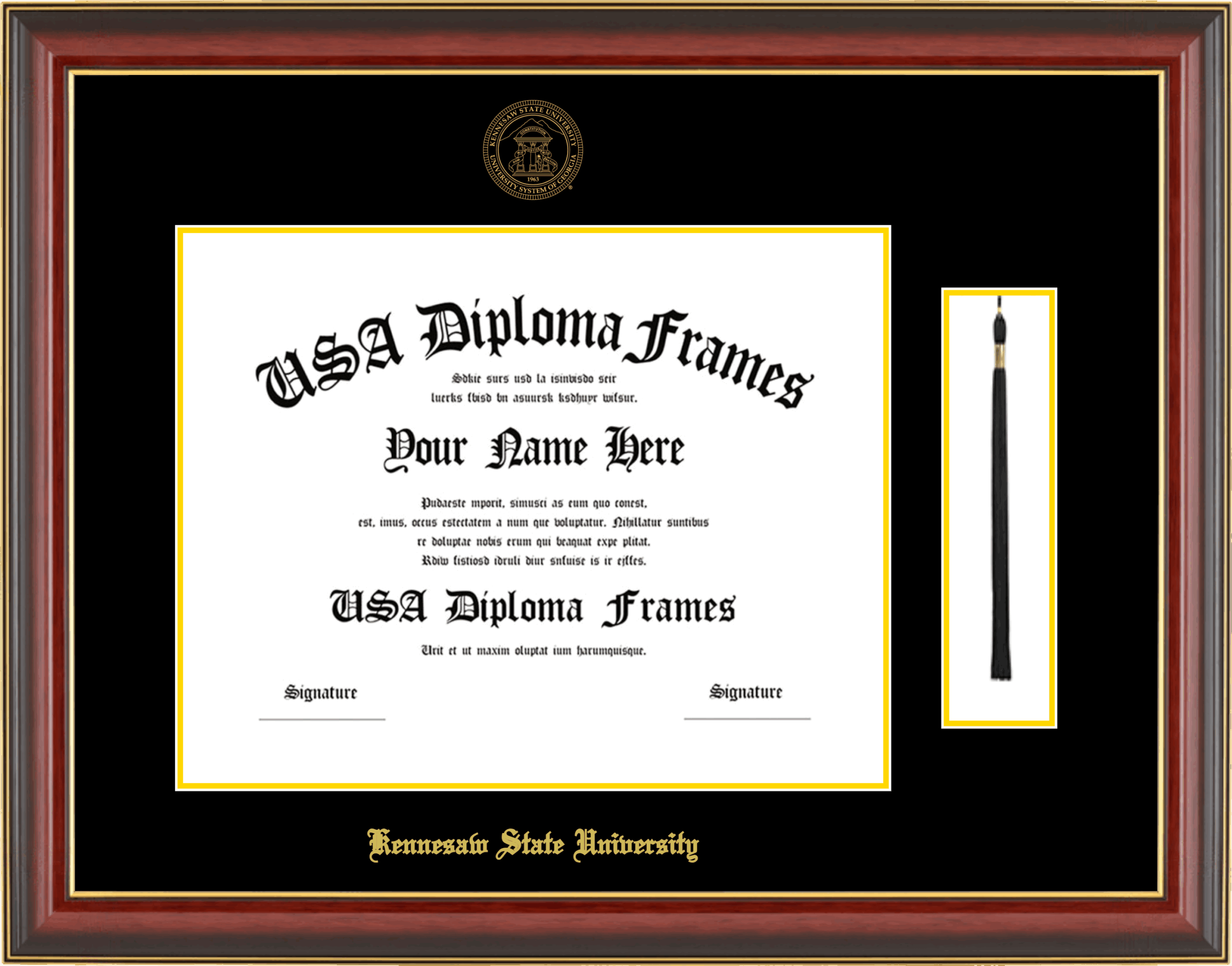 Kennesaw State University – Single Horizontal Document ( Bachelors ) – Cherry Mahogany Gold Trim Glossy – Black Mat – Yellow Gold Accent Mat – With Tassel(Default) – With Seal(University Seal Gold) – With Gold Embossing (Kennesaw State University)
