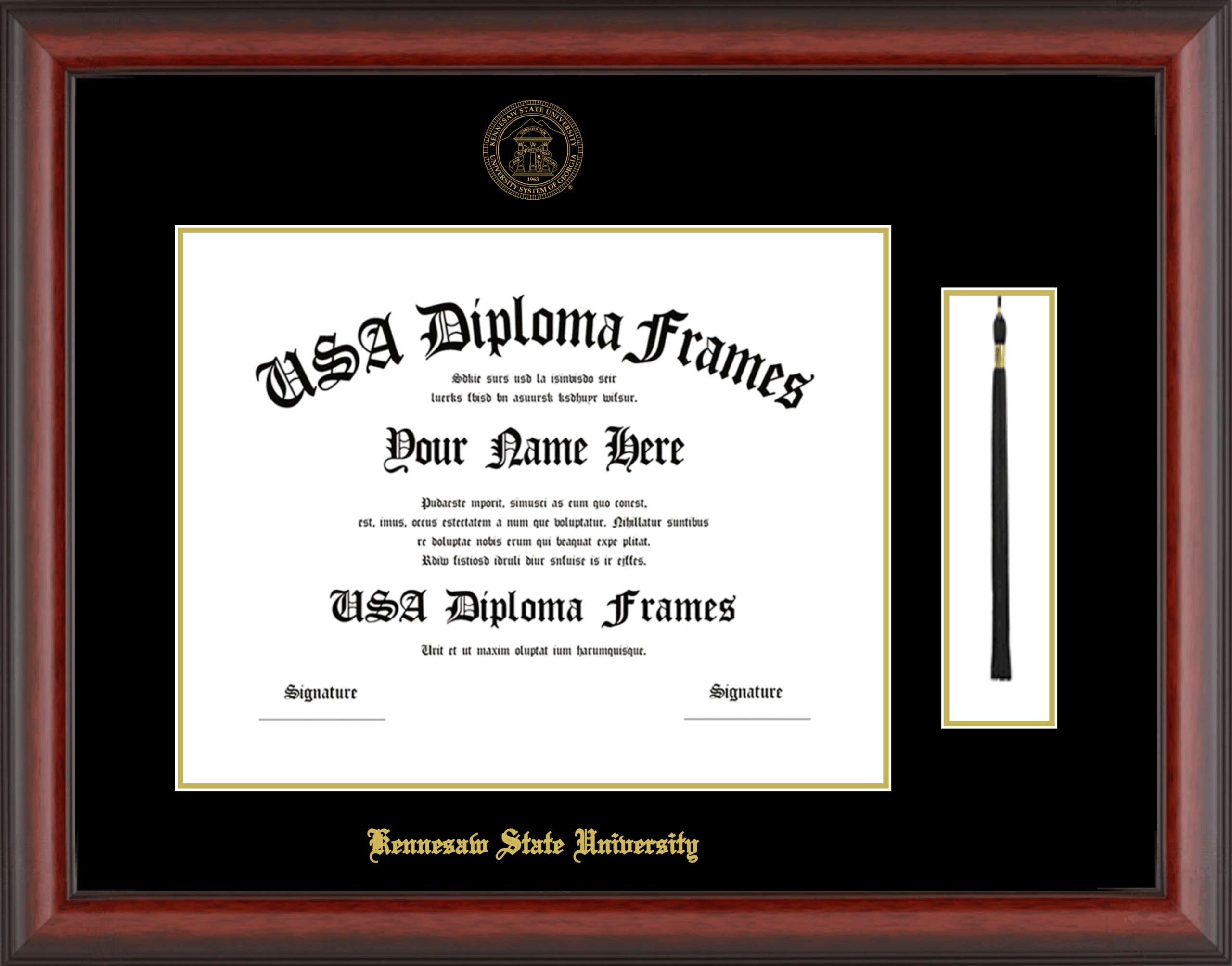 Kennesaw State University – Single Horizontal Document ( Bachelors ) – Cherry Mahogany Matte – Black Mat – Gold Accent Mat – With Tassel(Default) – With Seal(University Seal Gold) – With Gold Embossing (Kennesaw State University)