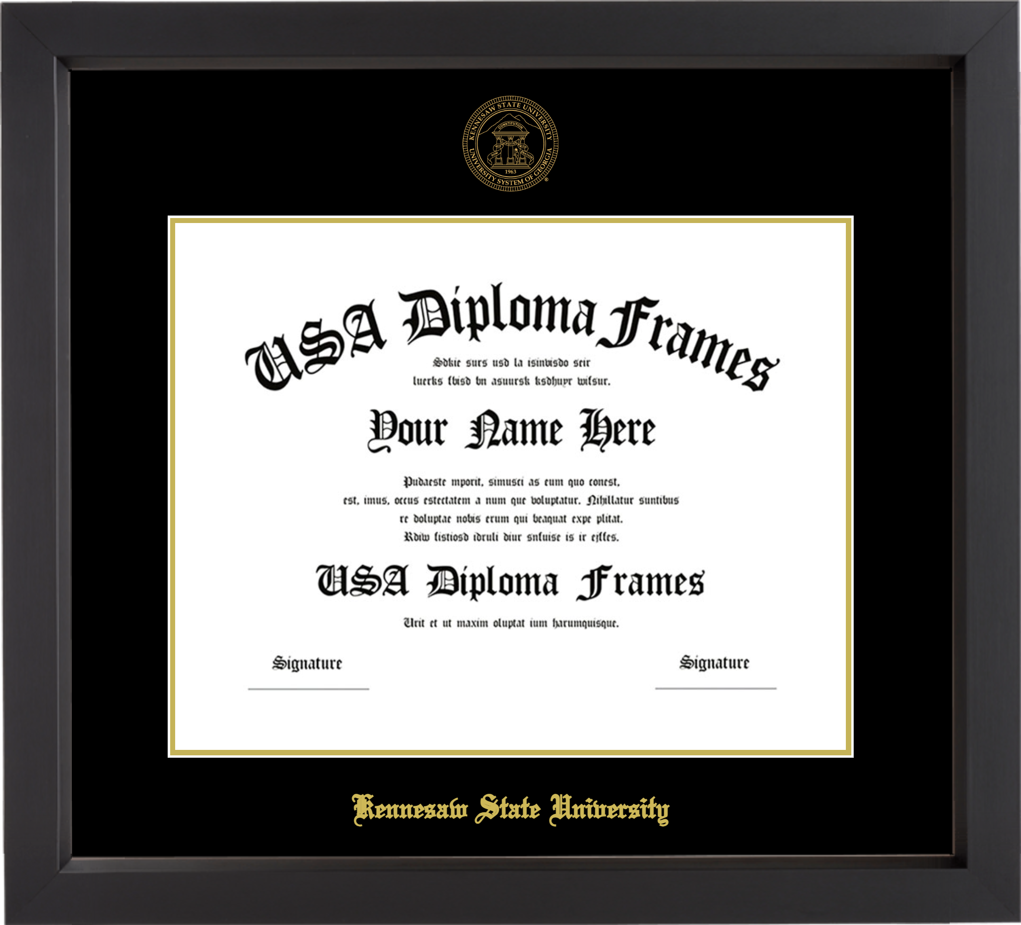 Kennesaw State University Diploma Frame – Black Matte – Black and Gold Mat