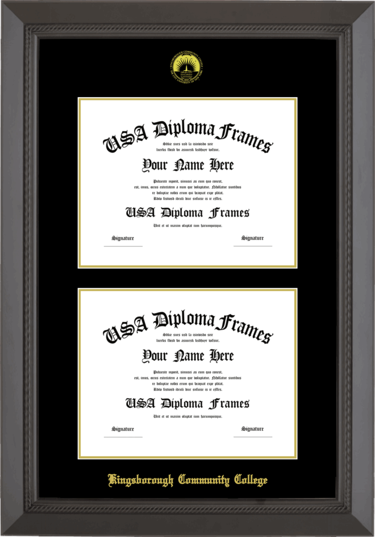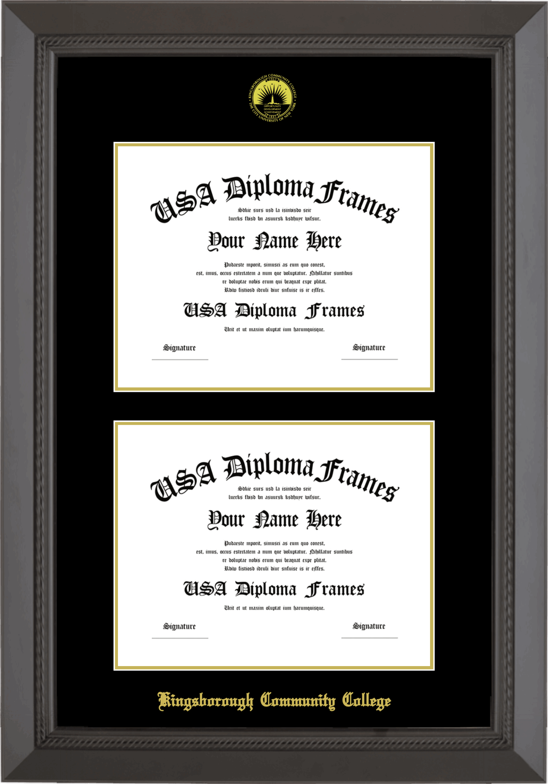 Kingsborough College Double Diploma Frame – Double Document – Black Rope – Black and Gold Mat