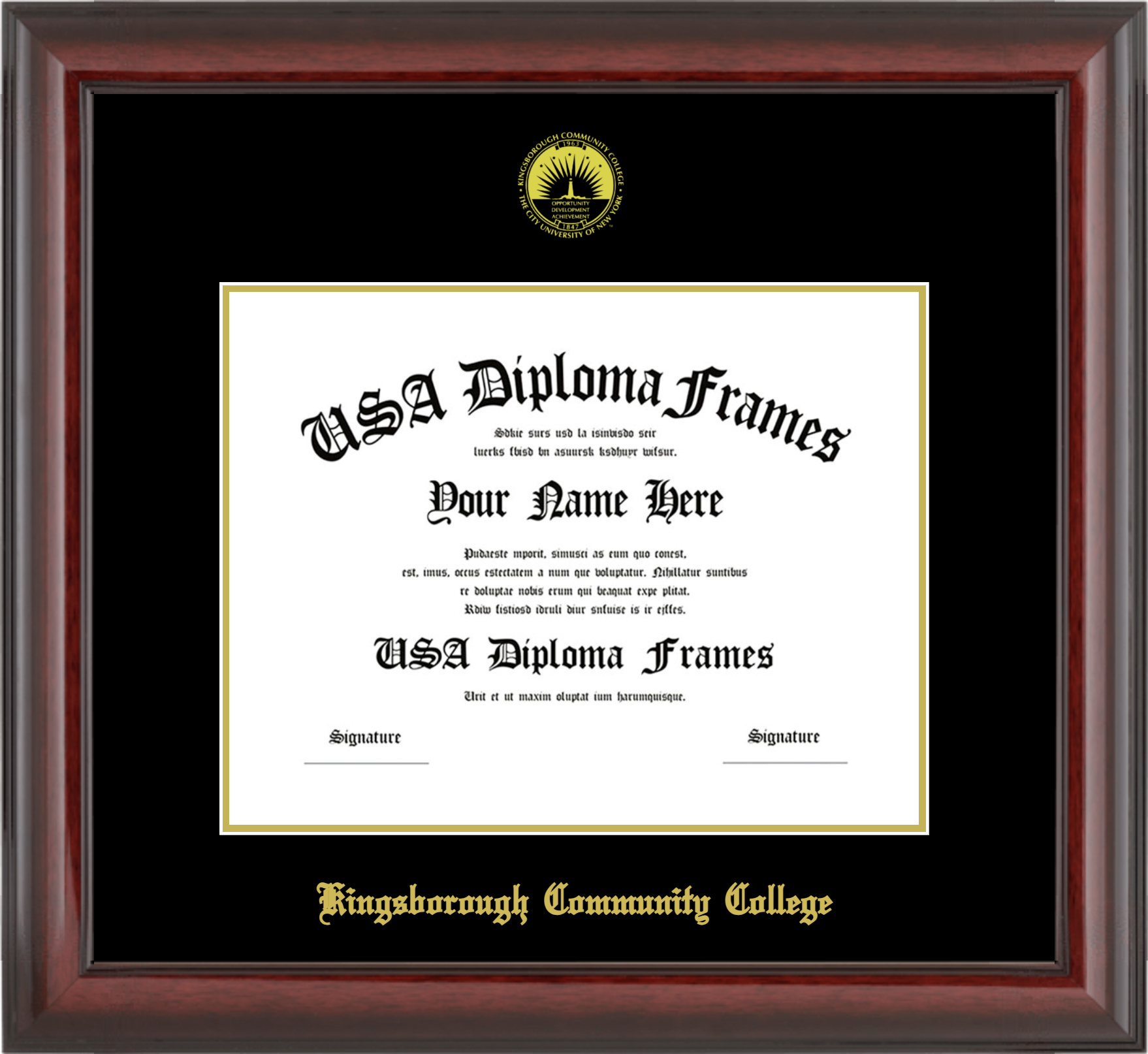 Want to explore more styles? Browse our full range of diploma frame layouts, or visit the Kingsborough Community College of the City University of New York to view options available for your school. Looking for a fully personalized design? Try our custom Frame Builder and create a frame that’s uniquely yours.