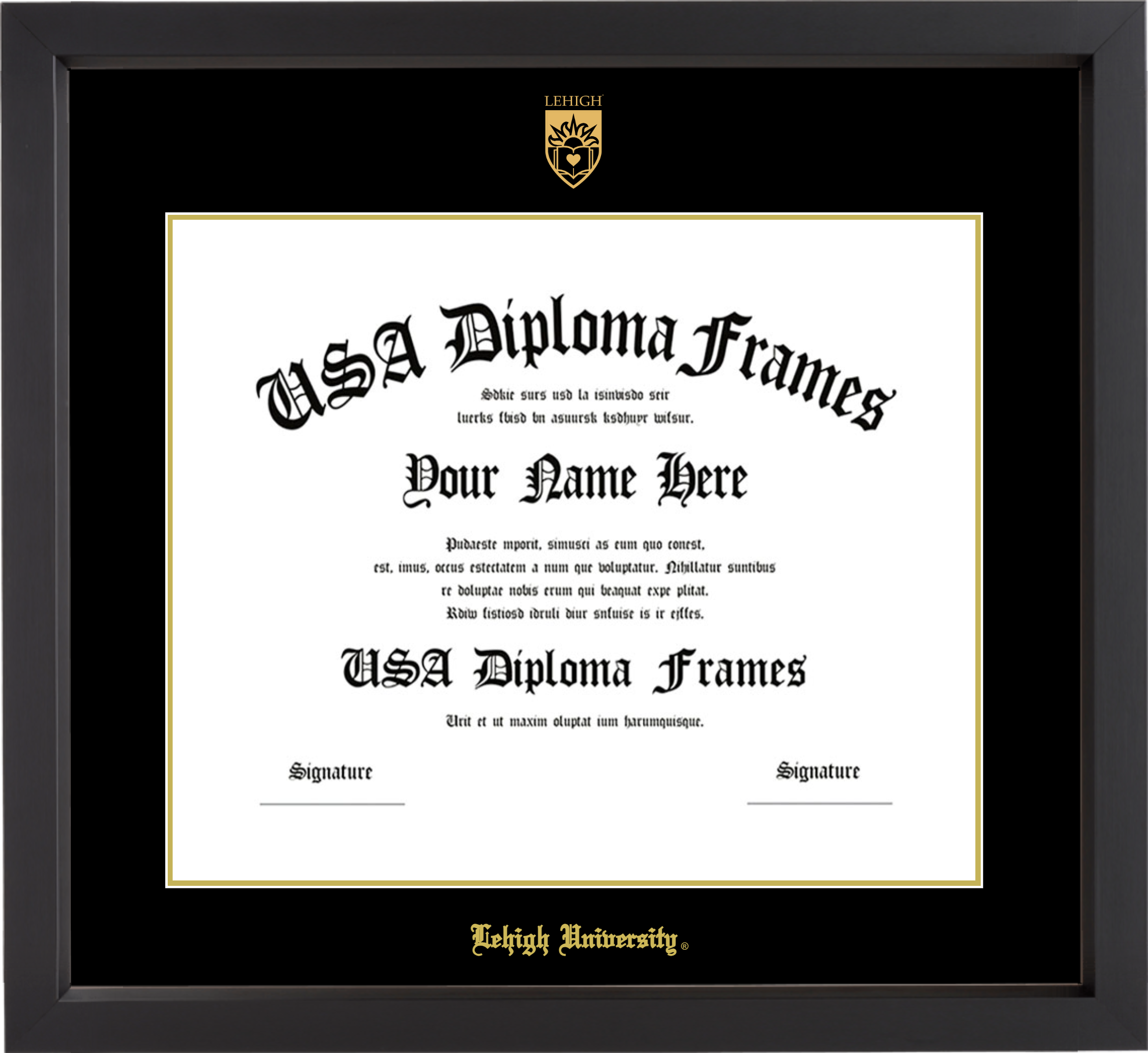 Lehigh University Diploma Frame – Black Matte – Black and Gold Mat