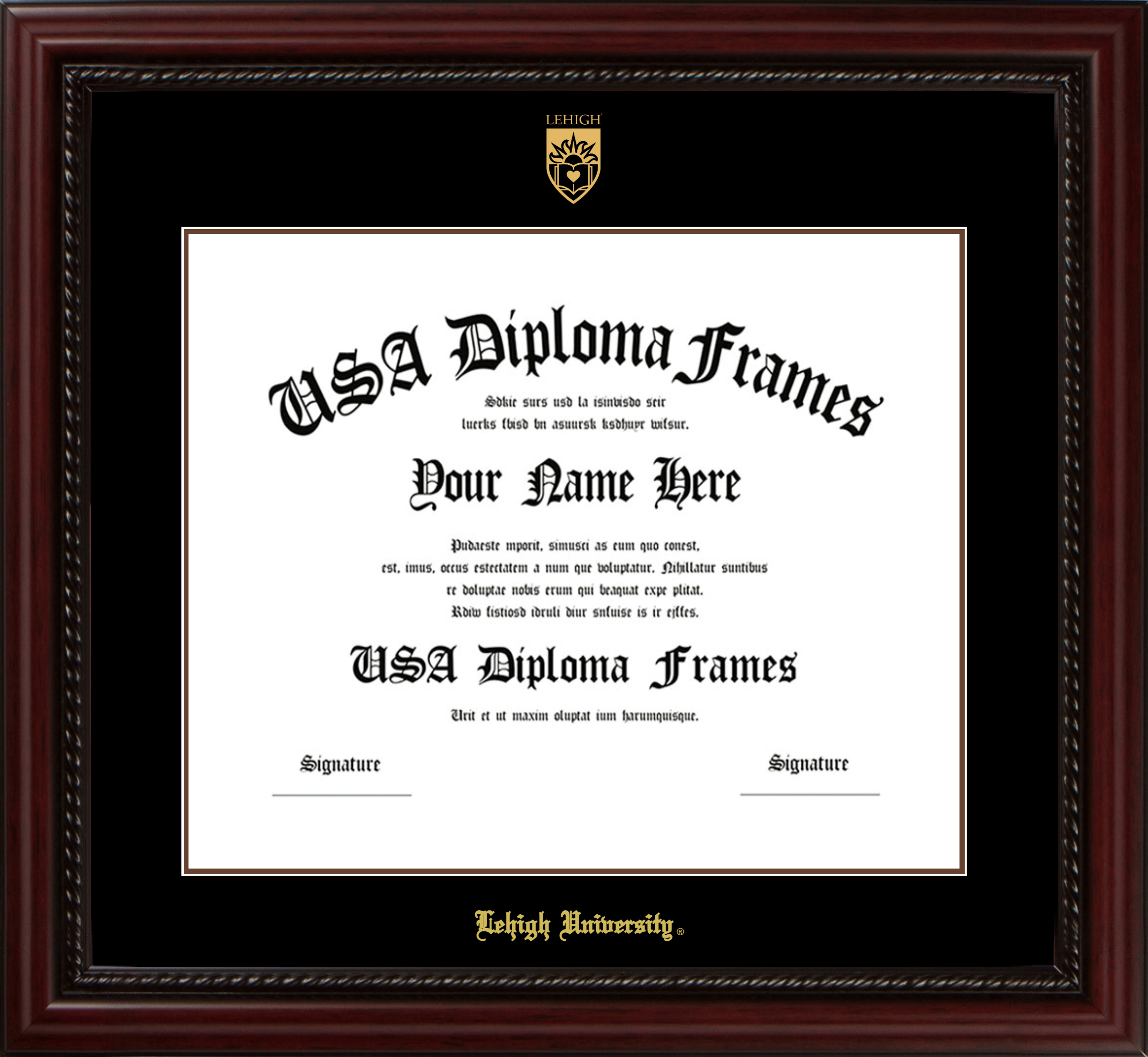 Lehigh University Diploma Frame – Executive Cherry Rope – Black and Brown Mat