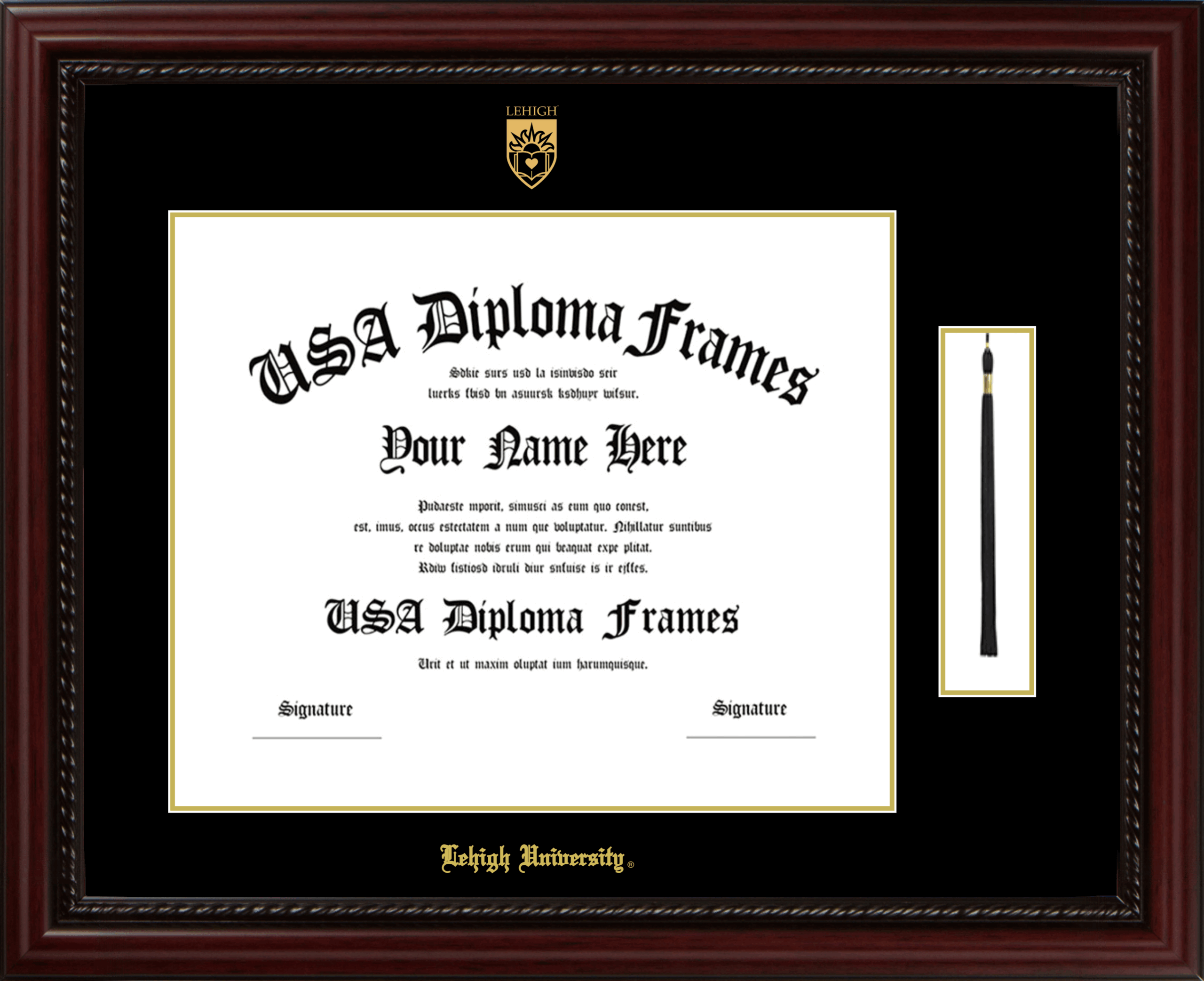 Lehigh University Diploma Frame with Tassel – Executive Cherry Rope – Black and Gold Mat