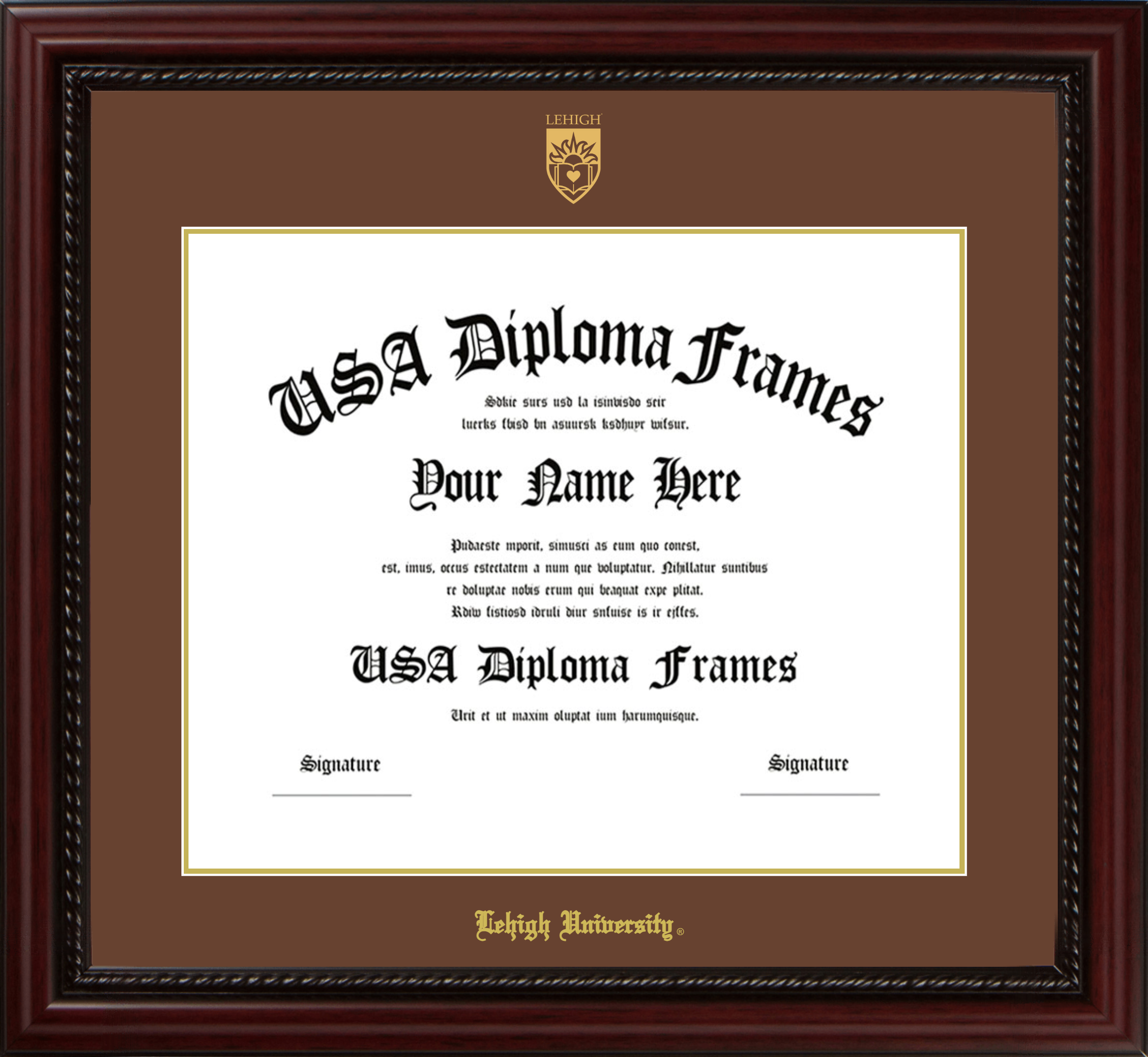 Lehigh University – Single Horizontal Document ( Diploma ) – Executive Cherry Rope – Brown Mat – Gold Accent Mat – With Seal(University Seal Gold) – With Gold Embossing (Lehigh University)