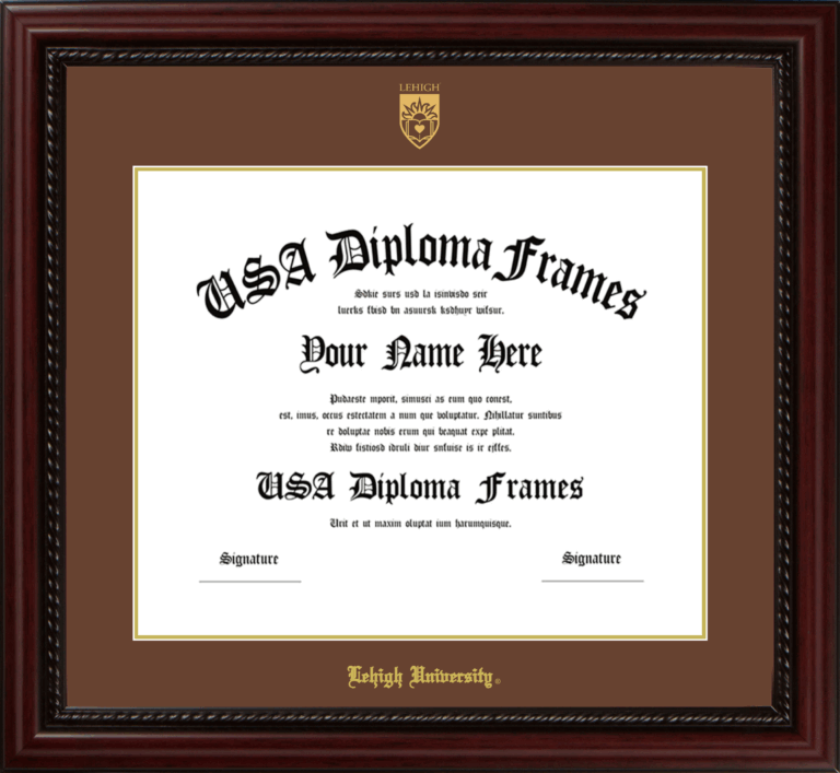 Lehigh University Diploma Frame – Executive Cherry Rope – Brown and Gold Mat