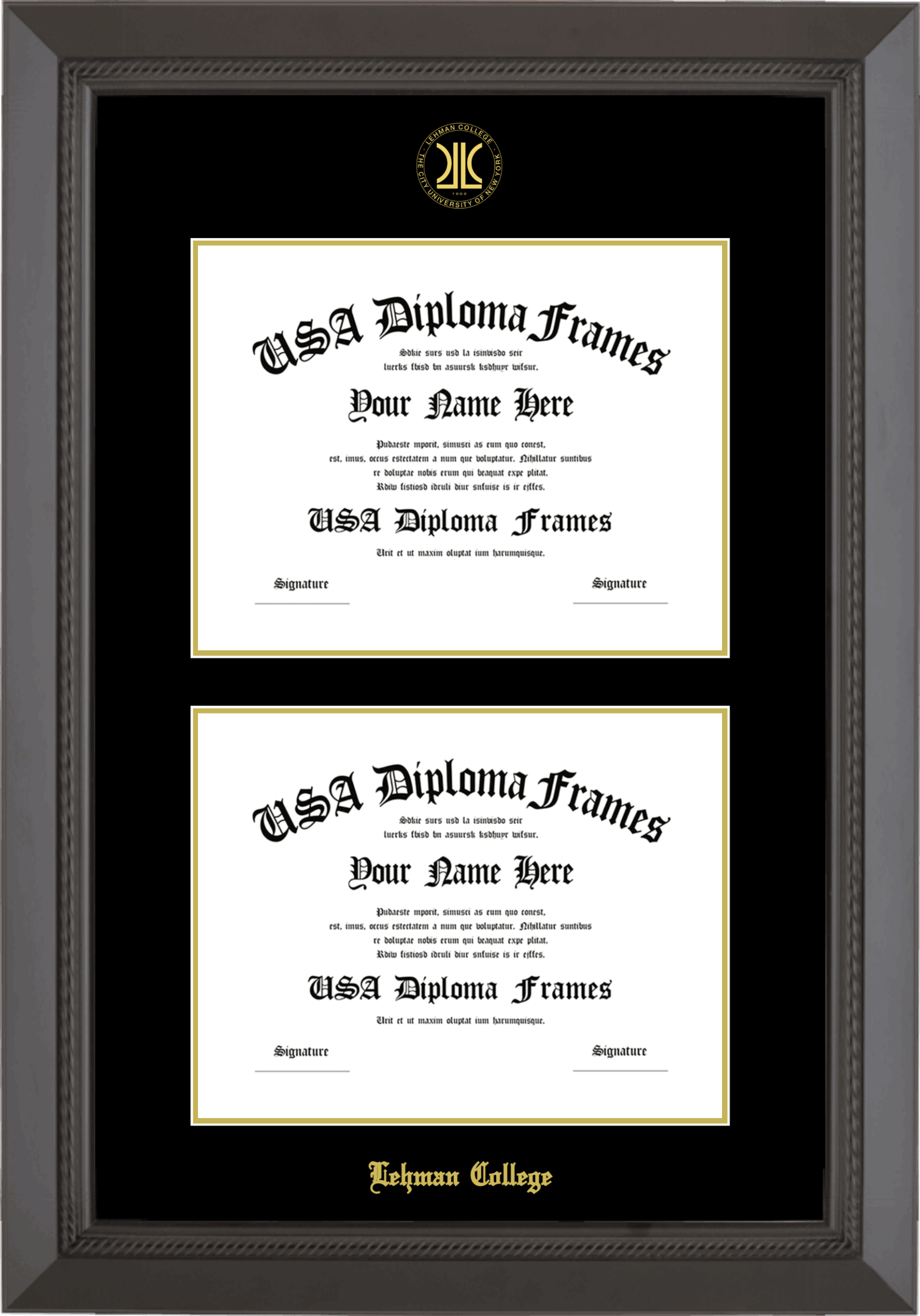 Lehman College Double Diploma Frame – Double Document – Black Rope – Black and Gold Mat