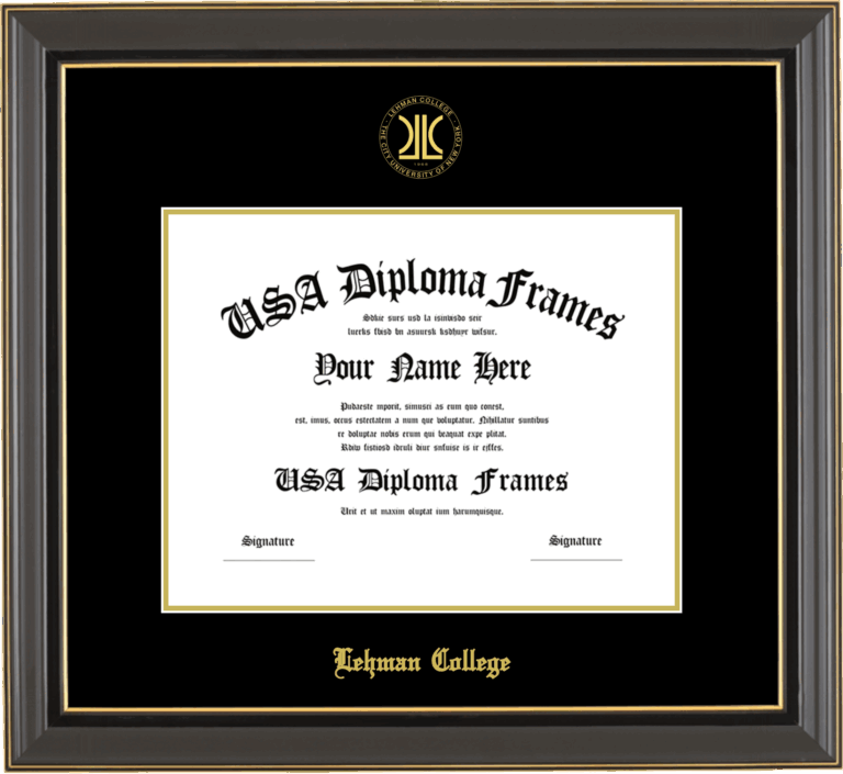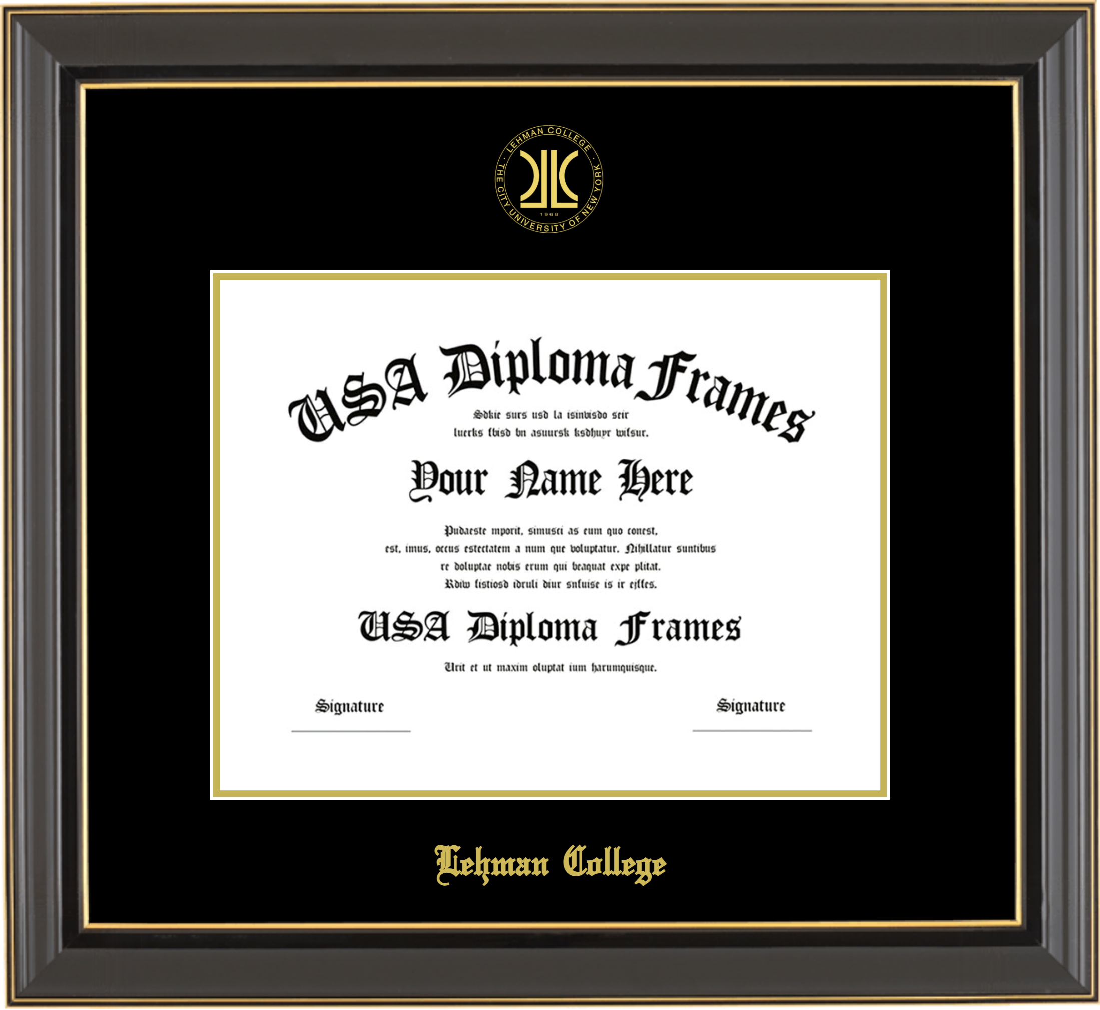 Lehman College Diploma Frame – Black Gold Trim Glossy – Black and Gold Mat
