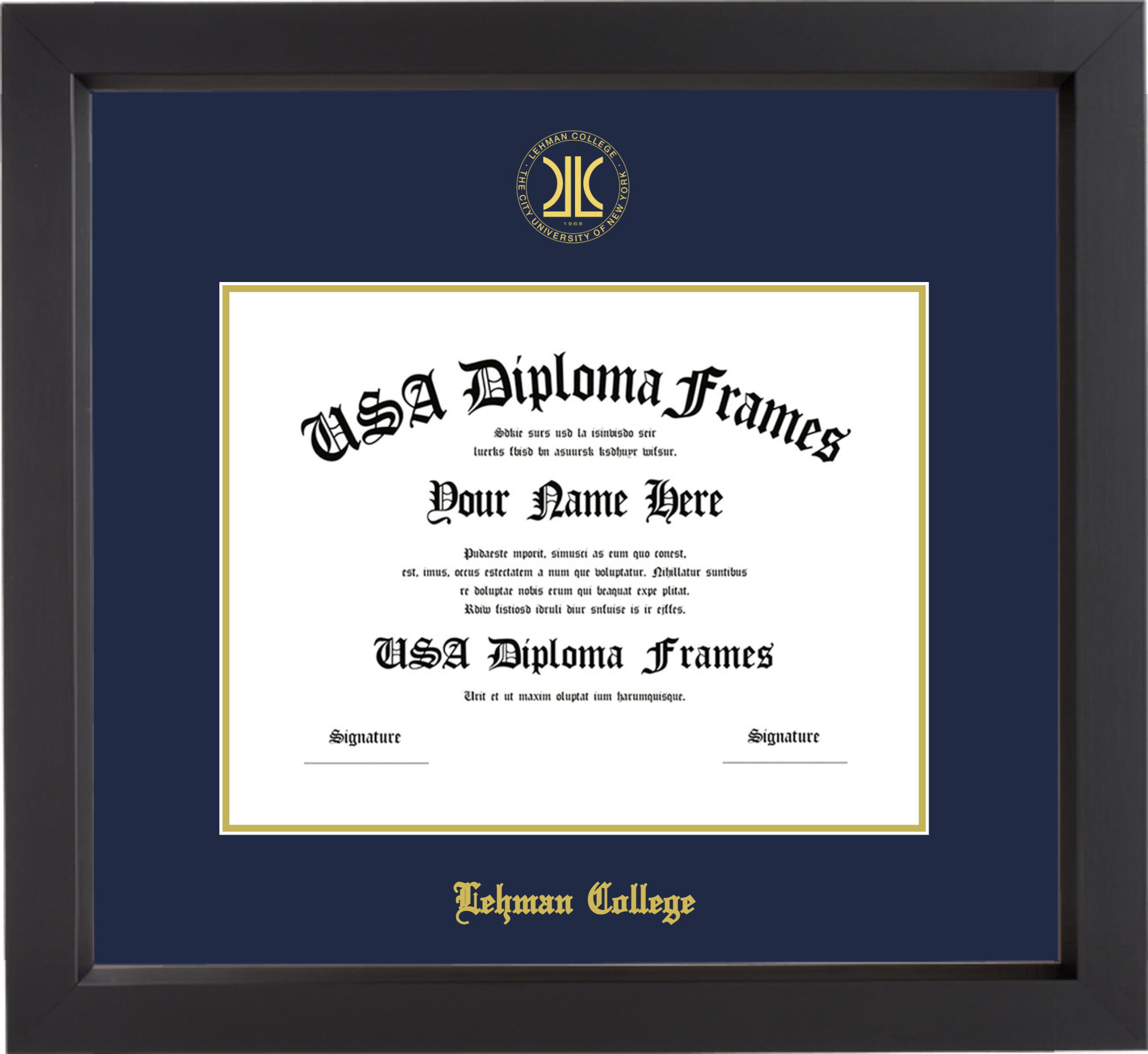 Lehman College of the City University of New York – Single Horizontal Document ( 8 1/2″x11″ ) – Black Matte – Navy Mat – Gold Accent Mat – With Seal(University Seal Gold) – With Gold Embossing (Lehman College)