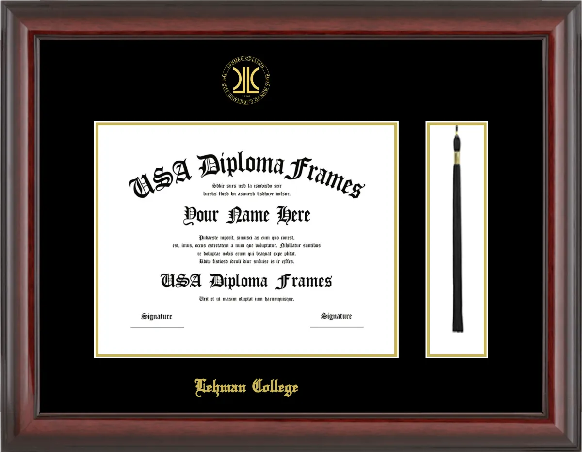 Lehman College Diploma Frame with Tassel – Cherry Mahogany Glossy – Black and Gold Mat