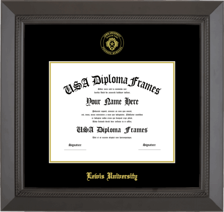 Lewis University Diploma Frame – Black Rope – Black and Gold Mat