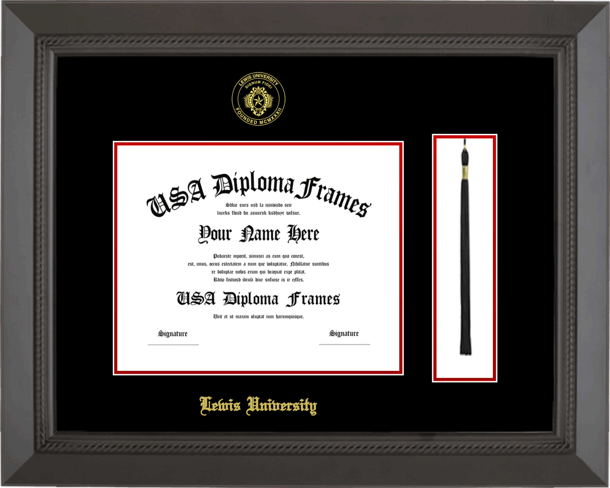Lewis University Diploma Frame with Tassel – Black Rope – Black and Red Mat