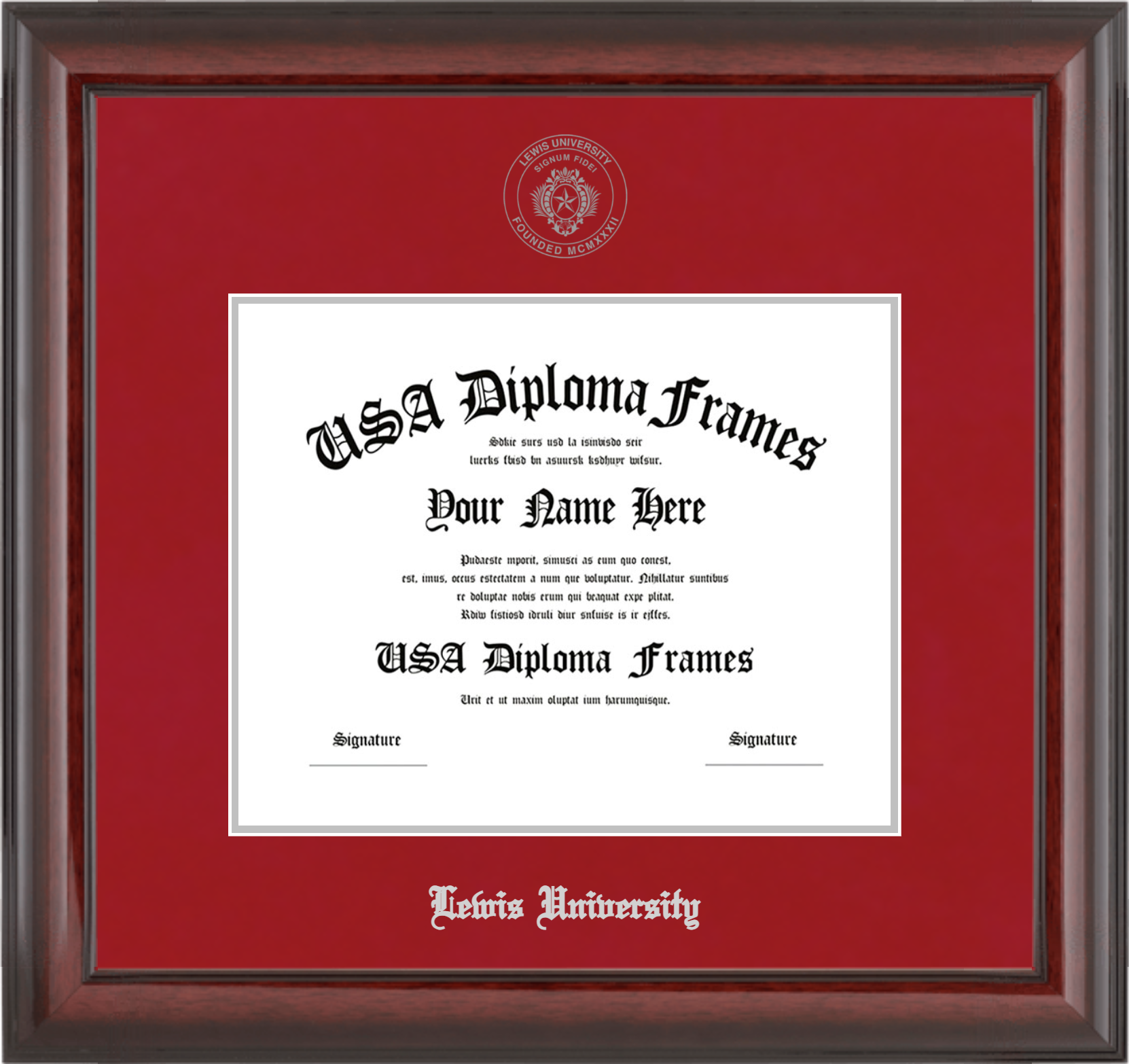 Want to explore more styles? Browse our full range of diploma frame layouts, or visit the Lewis University to view options available for your school. Looking for a fully personalized design? Try our custom Frame Builder and create a frame that’s uniquely yours.
