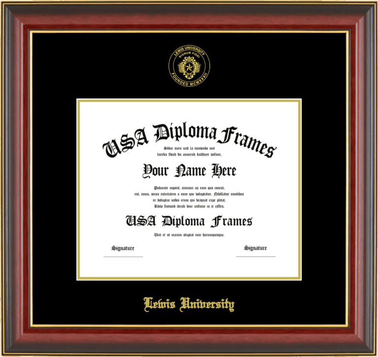 Lewis University Diploma Frame – Cherry Mahogany Gold Trim Glossy – Black and Gold Mat