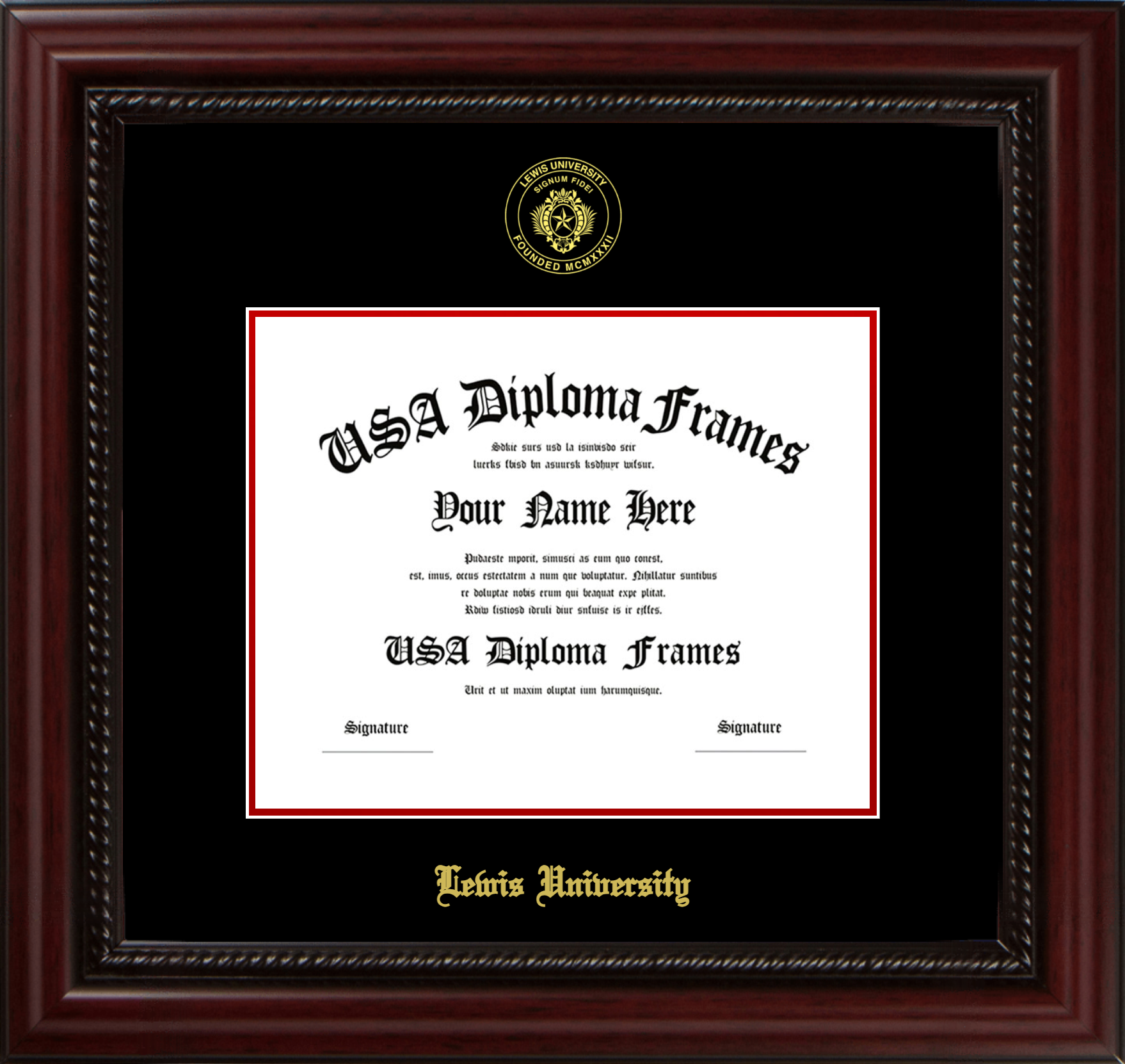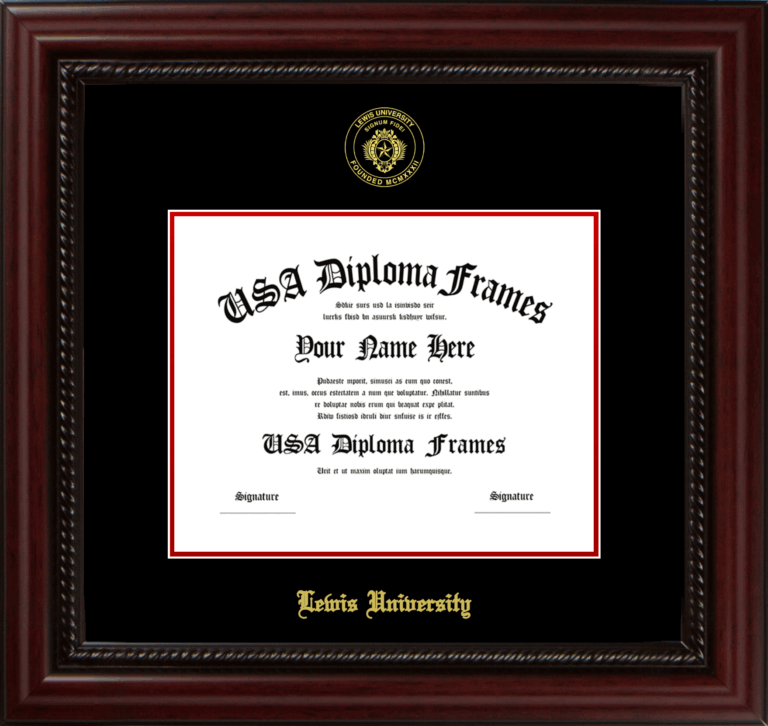 Lewis University Diploma Frame – Executive Cherry Rope – Black and Red Mat